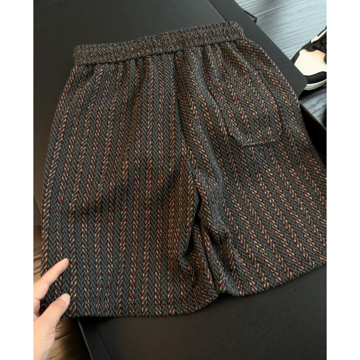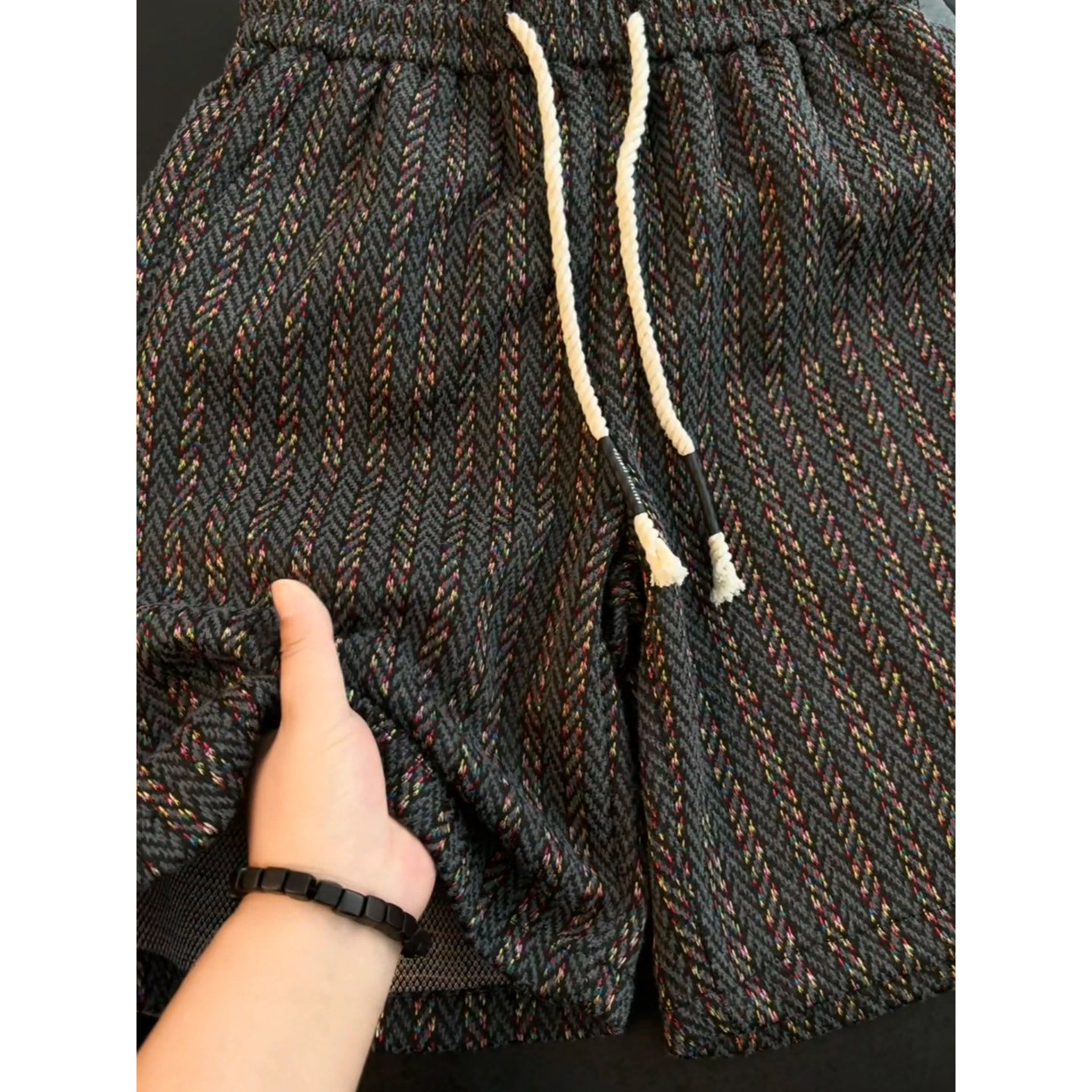 美式针织条纹短裤男款夏季外穿慵懒高级感休闲裤直筒宽松五分中裤