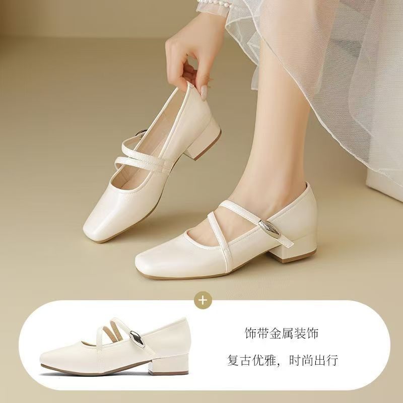品牌真皮方头玛丽珍单鞋女2026春季新款法式百搭复古气质通勤女鞋