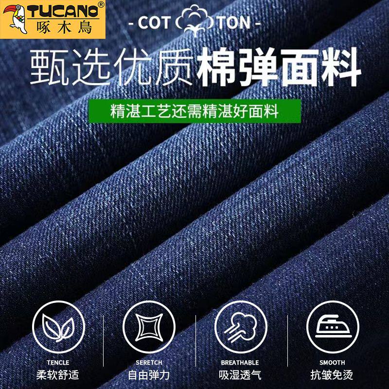 啄木鸟男士牛仔裤春季2026年新款宽松直筒弹力休闲青年大码长裤子