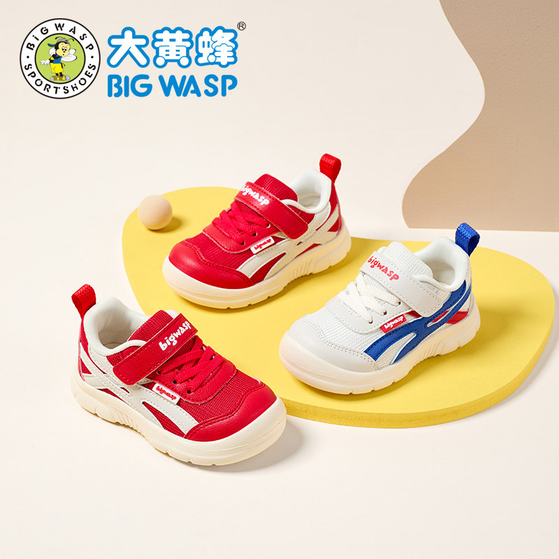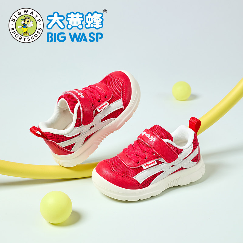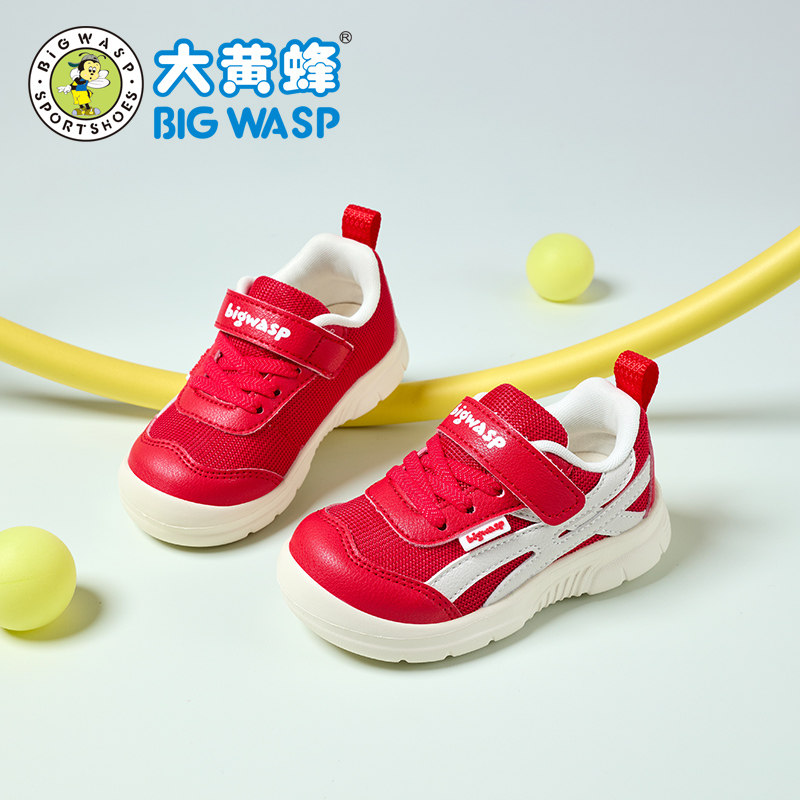 大黄蜂童鞋宝宝鞋子2026春款网面透气1-3岁红色新年款男宝学步鞋