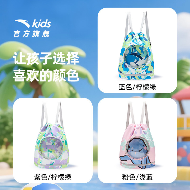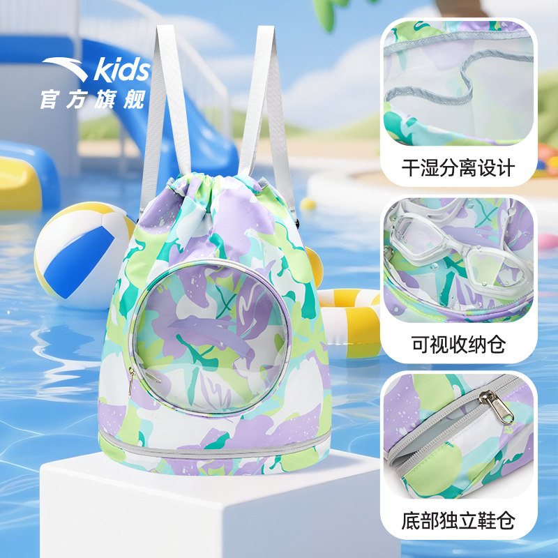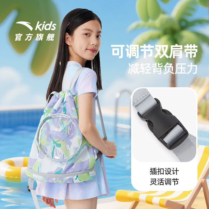 安踏儿童游泳收纳包干湿分离双肩包背包超轻防水大容量游泳装备潮