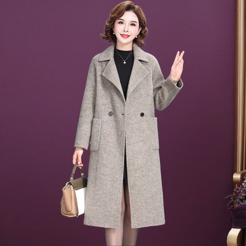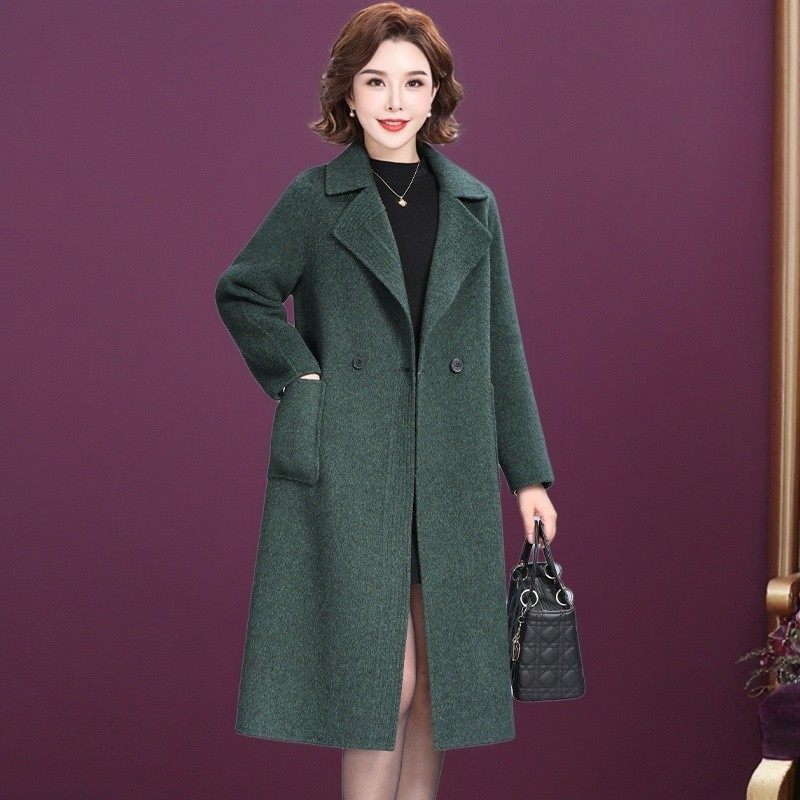 新款年轻妈妈女装中长款毛呢外套2026年春季时尚西装领双面呢大衣