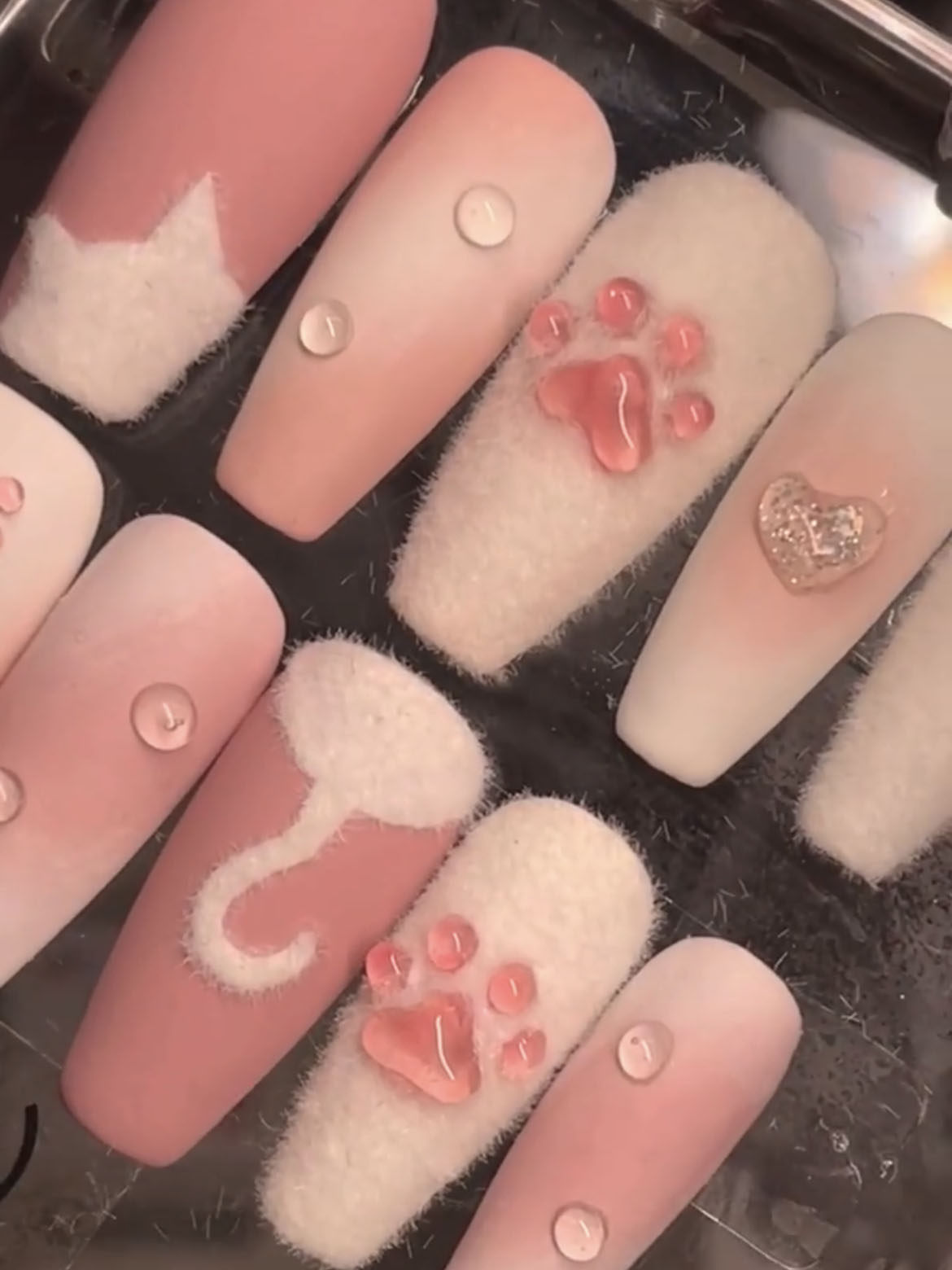 毛绒猫爪穿戴甲超可爱少女心穿戴美甲亮片可拆卸指甲甲片美甲330