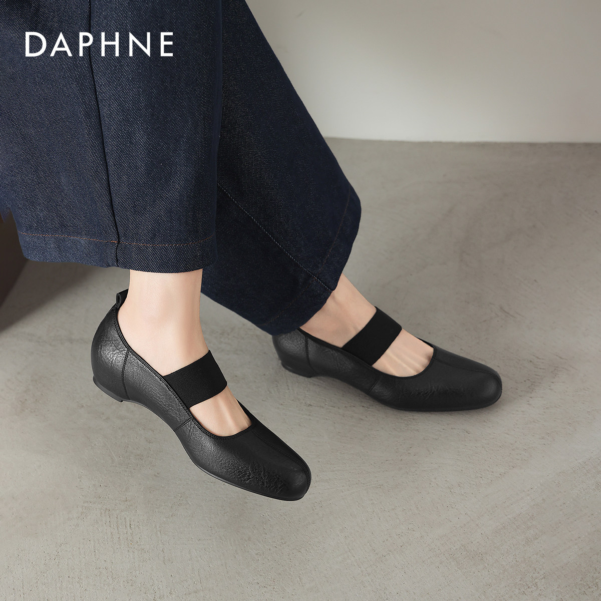 达芙妮黑色浅口单鞋女款2026新款春季法式气质软底内增高玛丽珍鞋