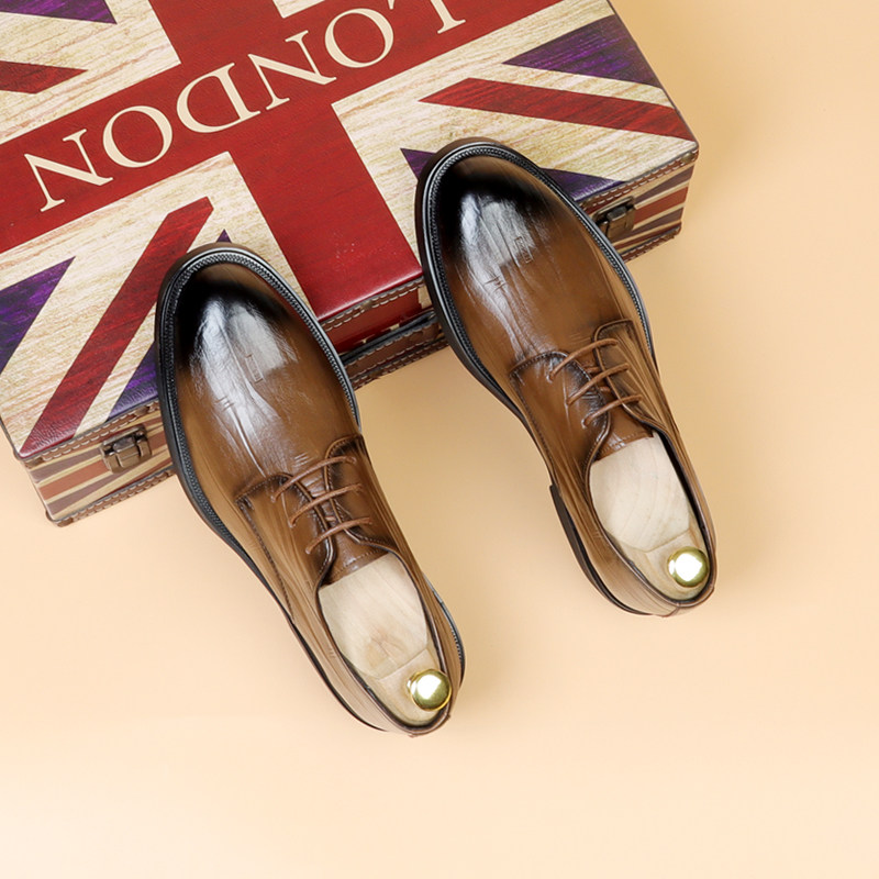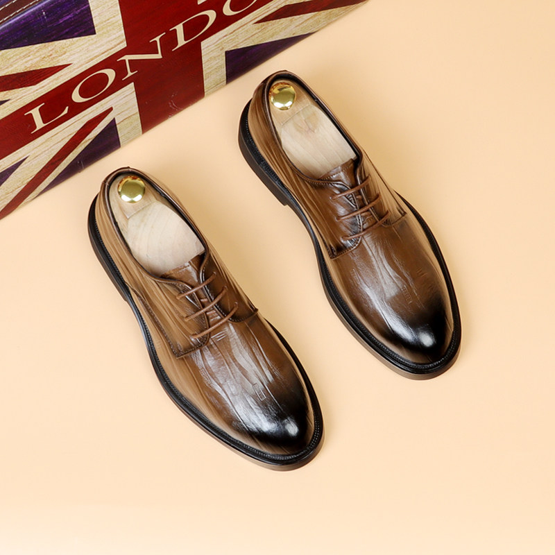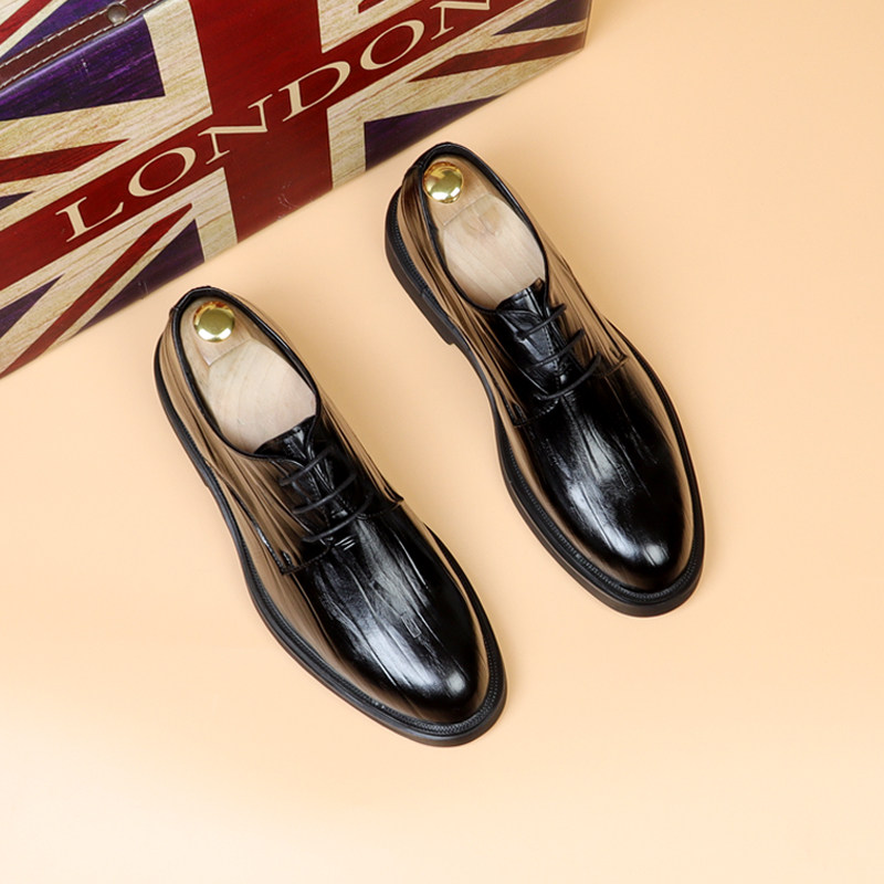 皮鞋男款尖头2026新款系带商务正装透气男鞋英伦增高男士休闲鞋子