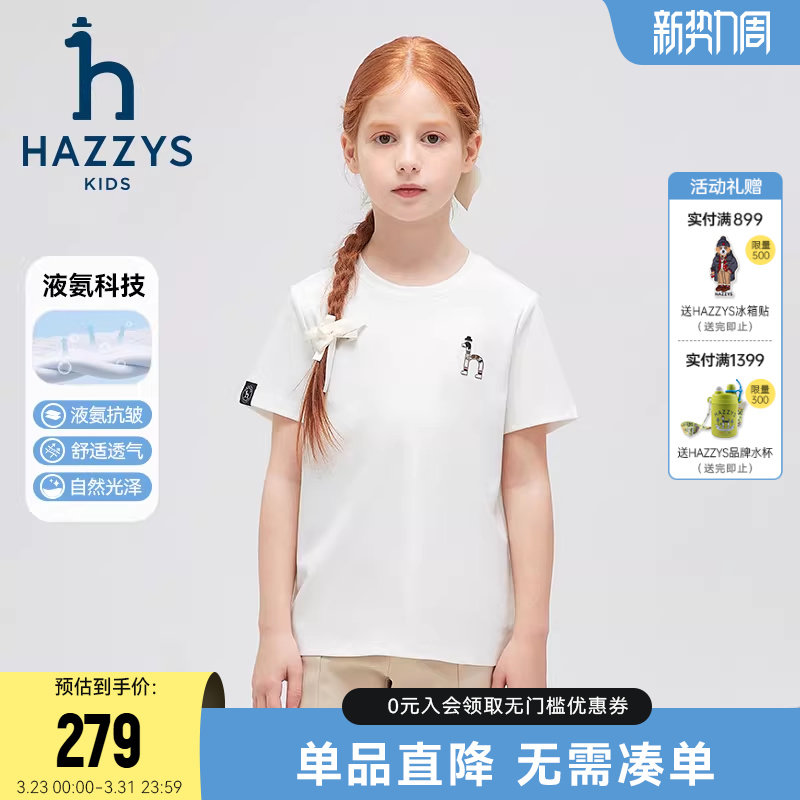 hazzys哈吉斯童装男女童短袖T恤2025夏新液氨科技抗皱透气圆领衫