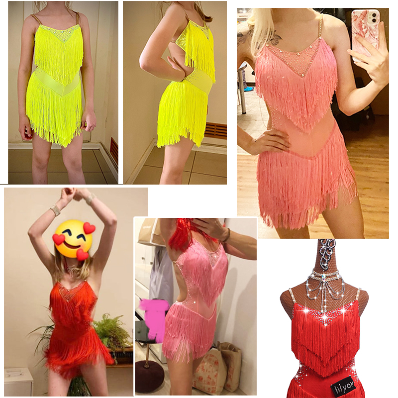 新款拉丁舞比赛服演出服表演裙性感吊带露背水钻显瘦显高流苏裙