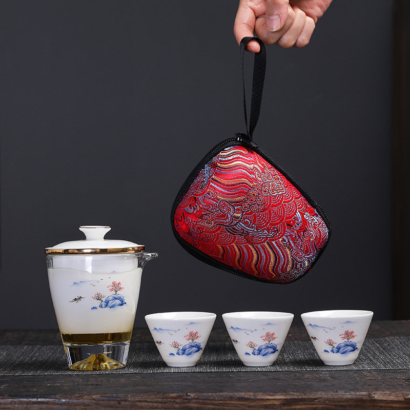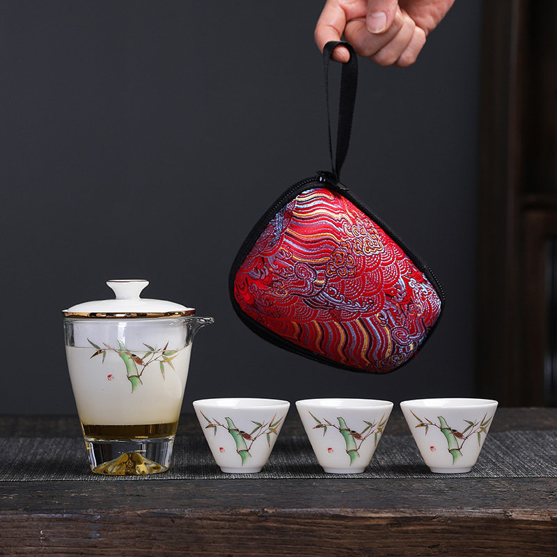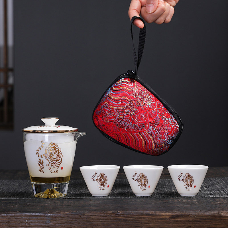 羊脂玉快客杯户外陶瓷玻璃便携式旅行功夫茶具泡茶小套装定制LOGO