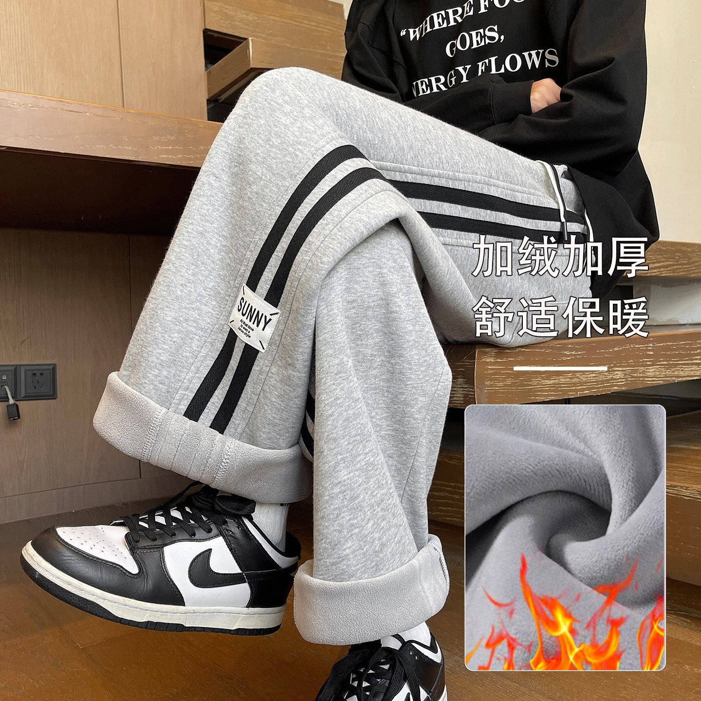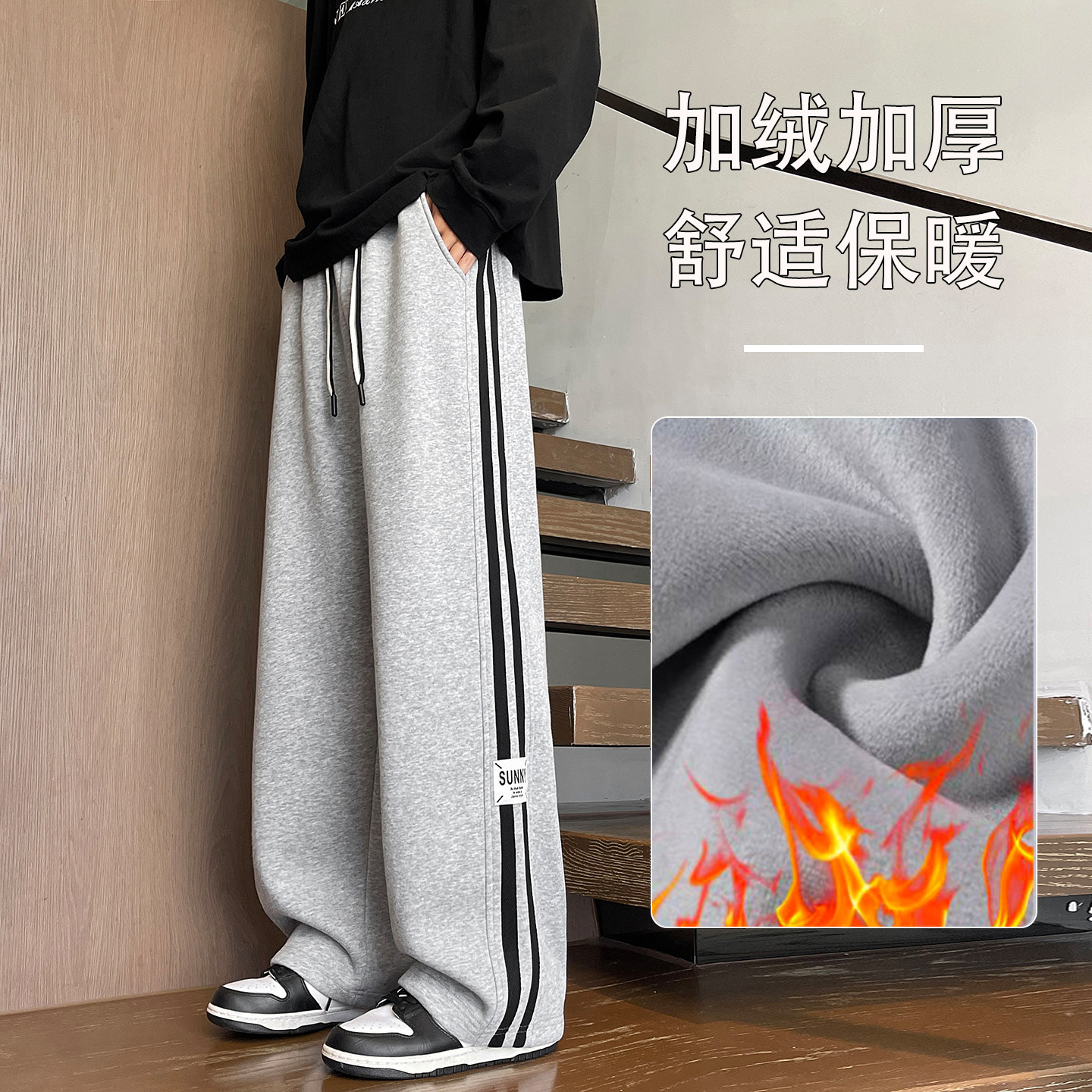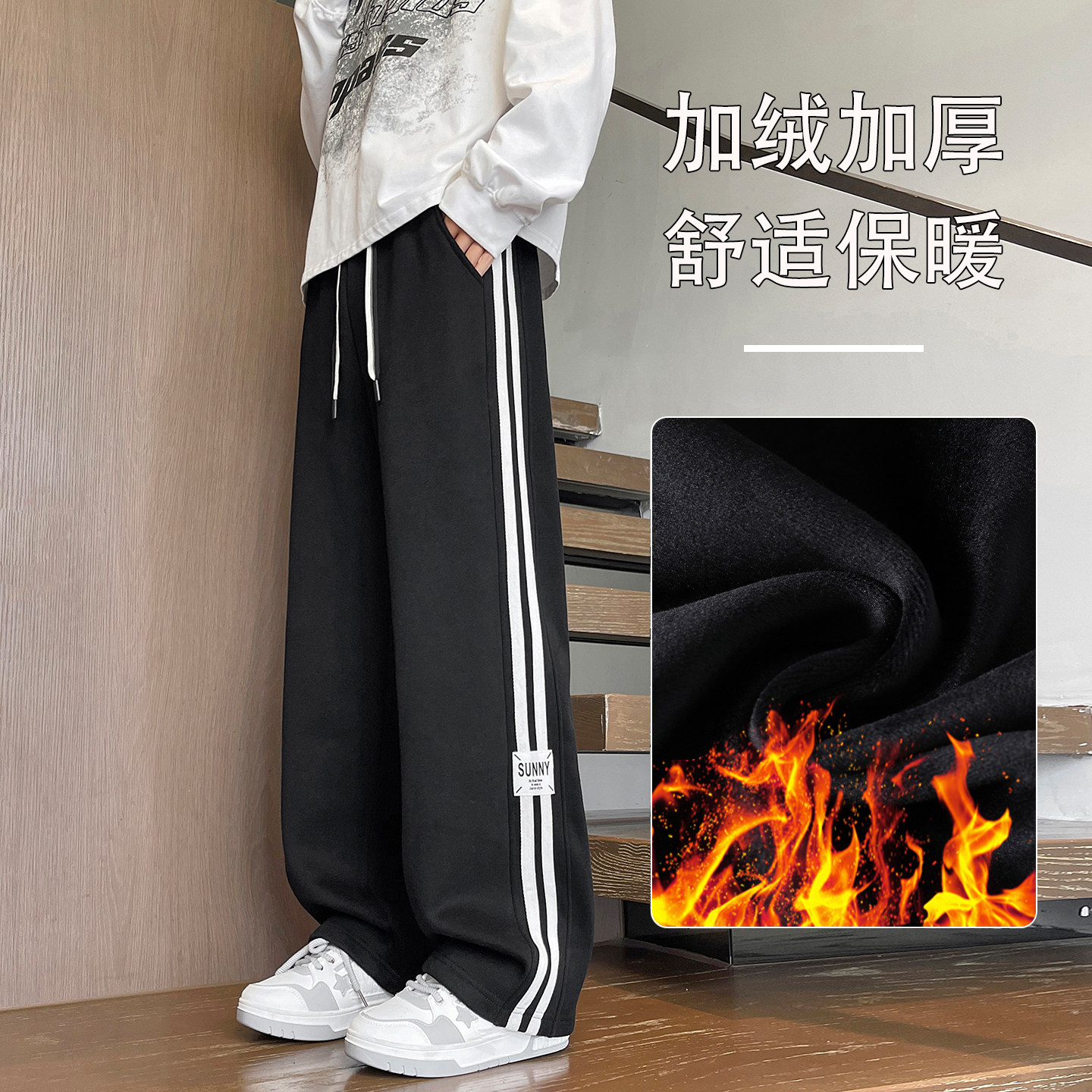 秋冬季加绒加厚裤子男孩初中学生潮流帅气长裤青少年大童休闲卫裤