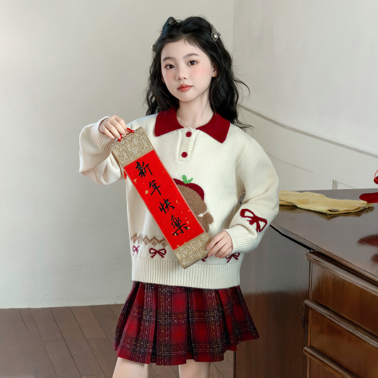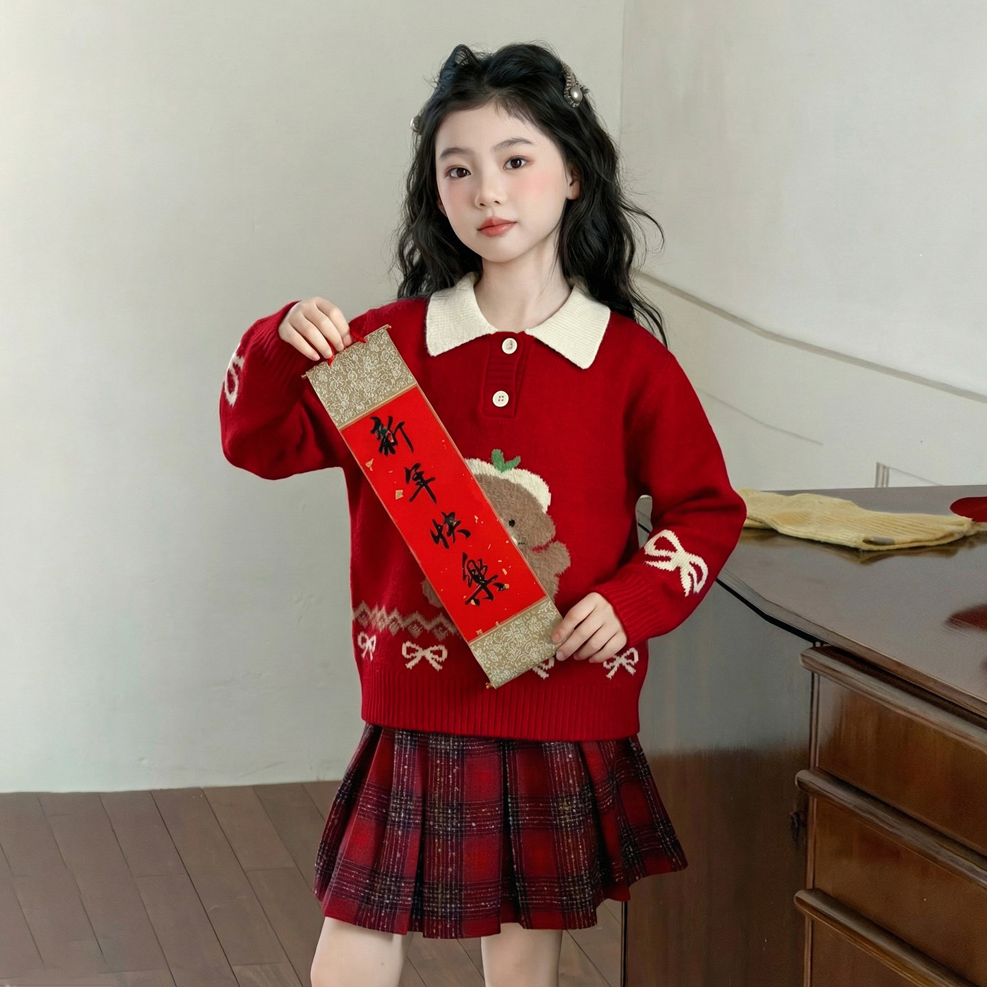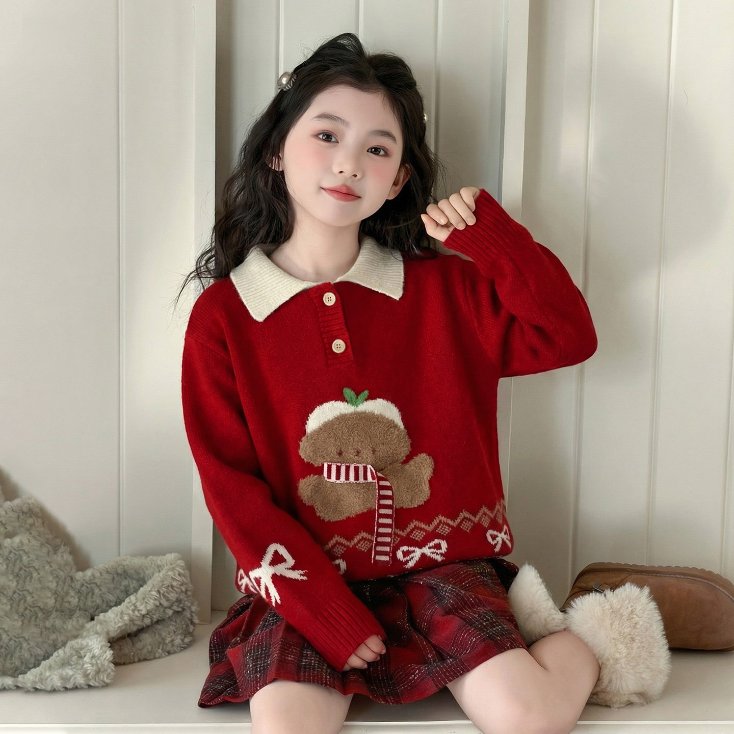 女童红色毛衣冬季儿童洋气冬装2025新款拜年服女孩新年装大童上衣