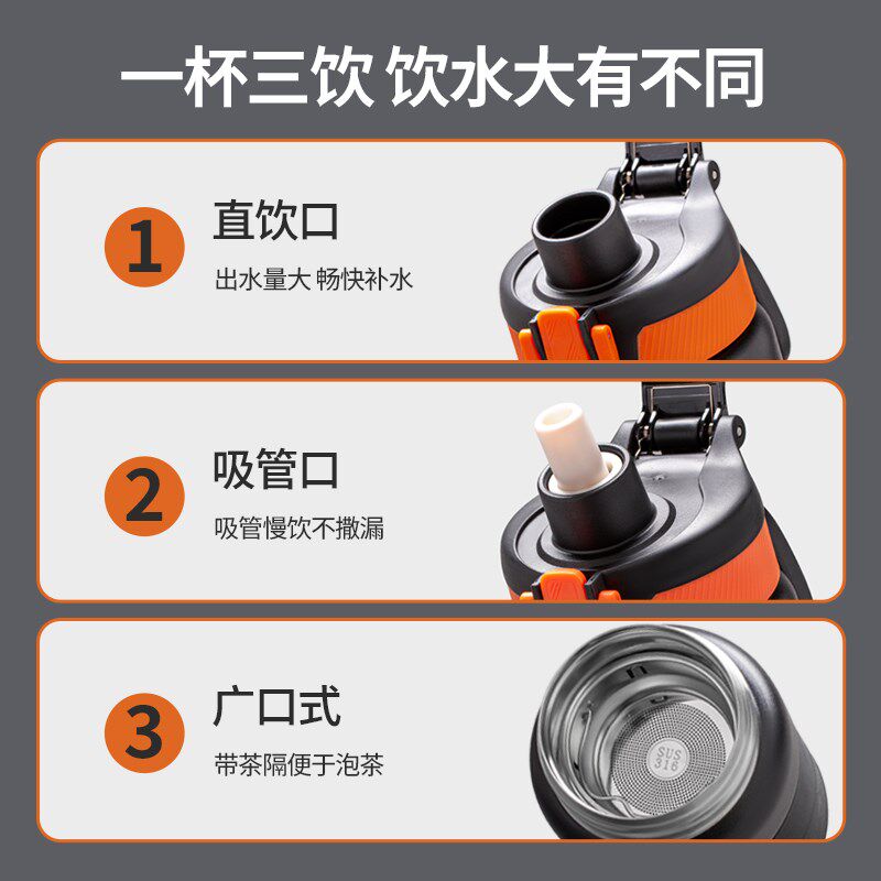 保温杯男款大容量2024新款便携运动水壶316不锈钢学生带吸管水杯