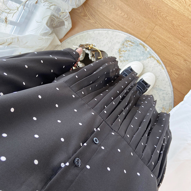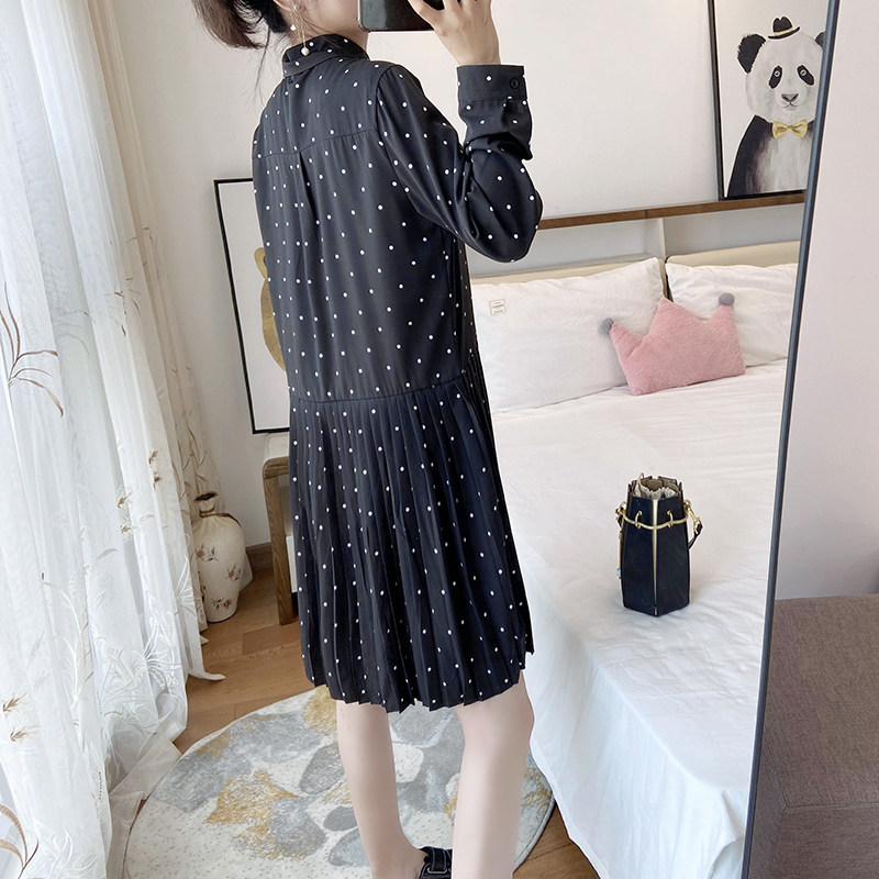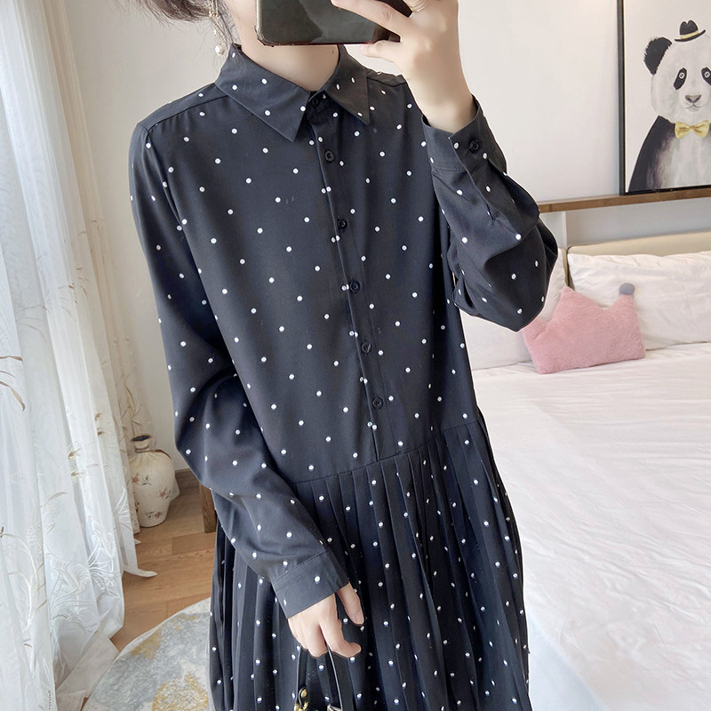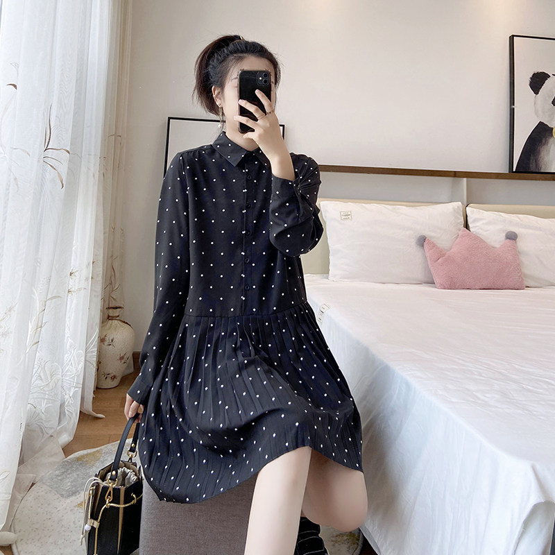 女装2025年新款春秋大码宽松显瘦波点百褶长袖连衣裙胖mm打底雪纺