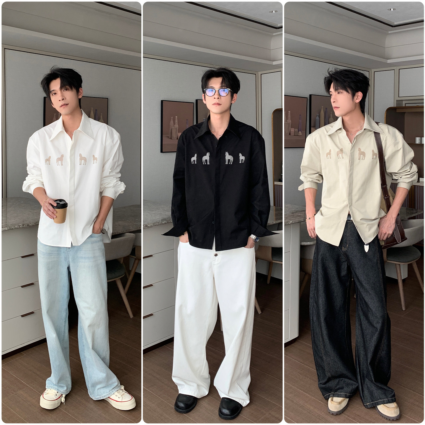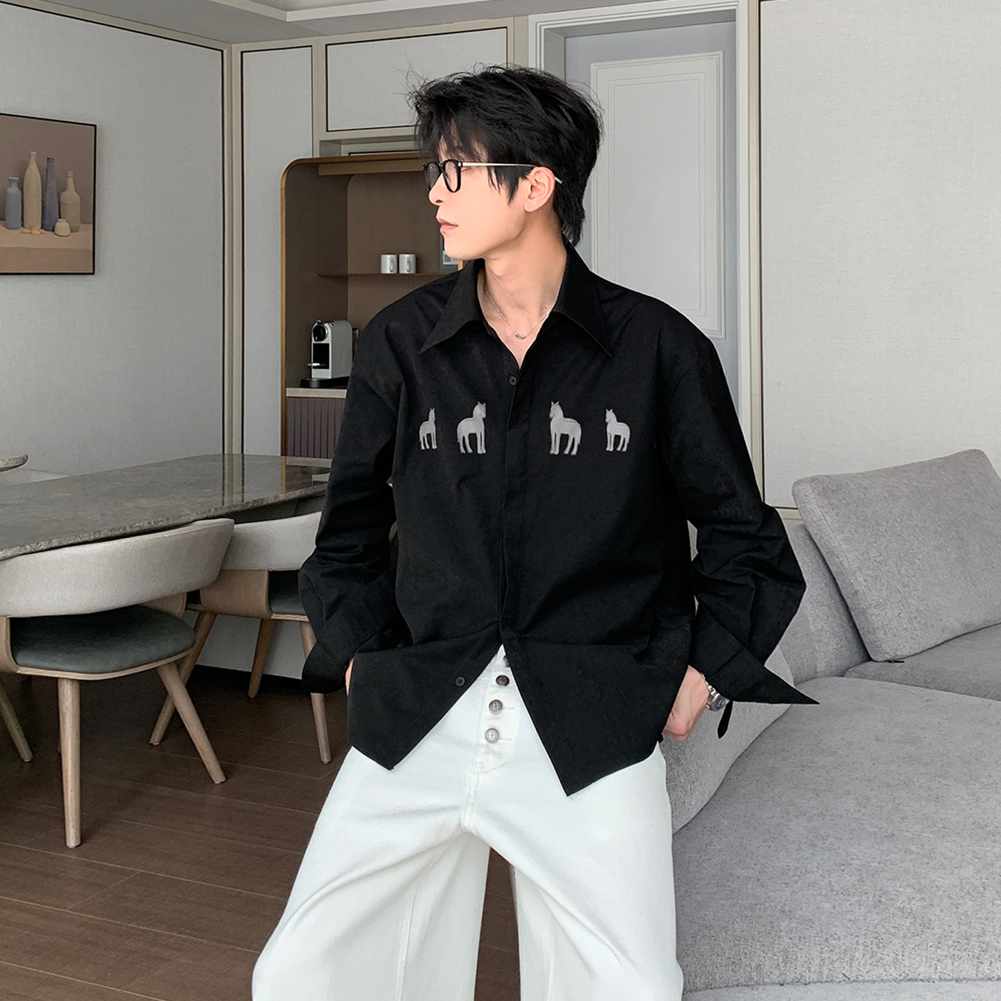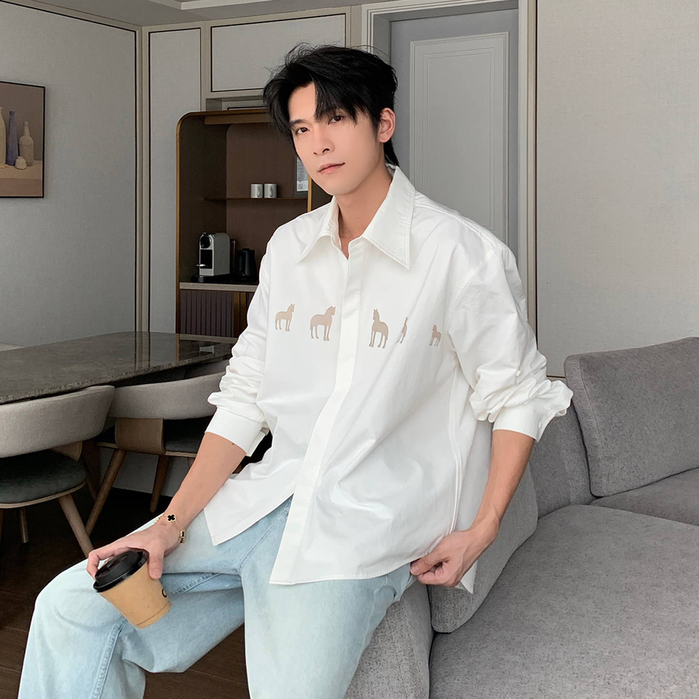 Hualun马年衣服新款衬衫式外套男款cleanfit长袖上衣韩版痞帅衬衣