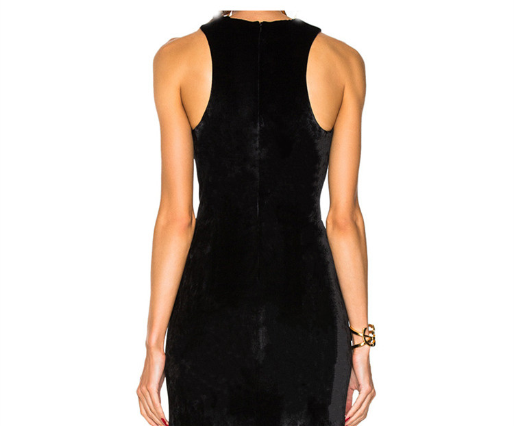 新款春季韩版女装长款连衣裙金丝绒圆领无袖开叉性感长裙年会礼服