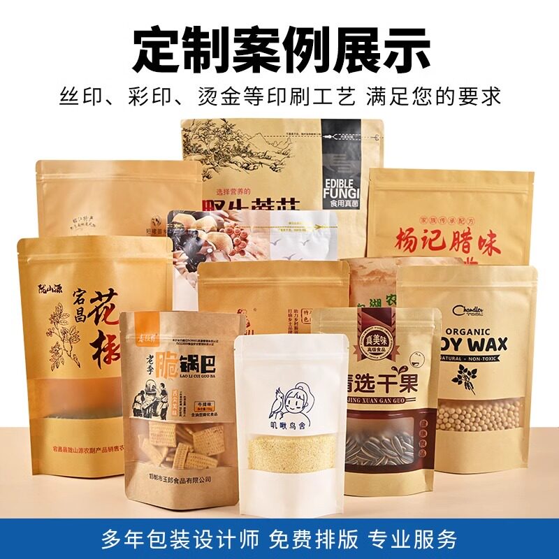 牛皮纸自封袋茶叶食品包装袋土特产封口袋加厚防水零食收纳定制袋