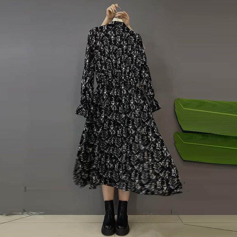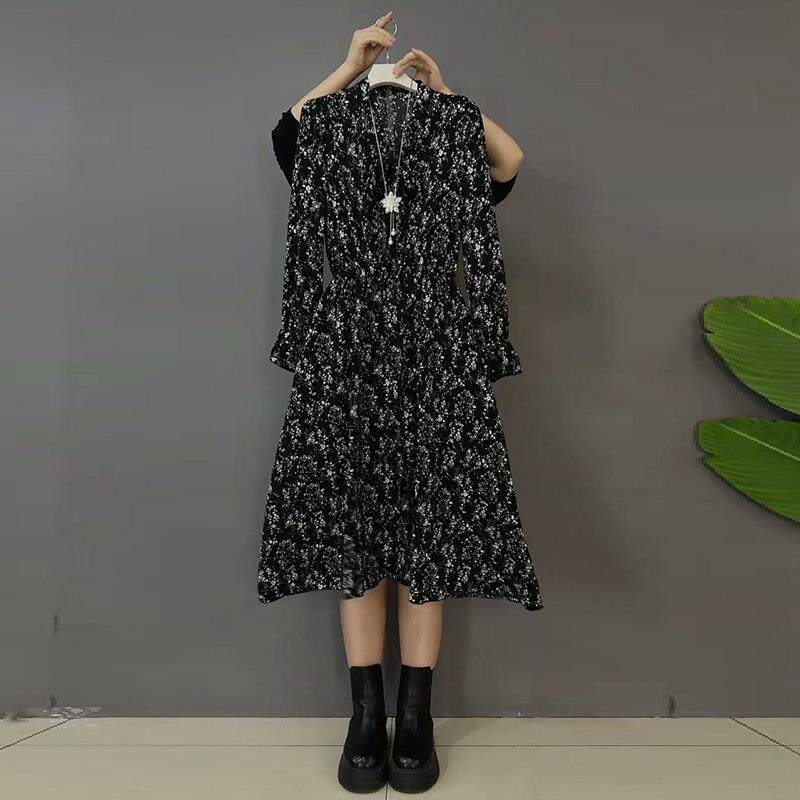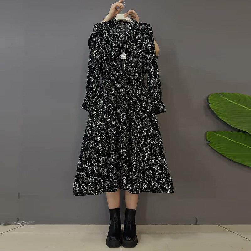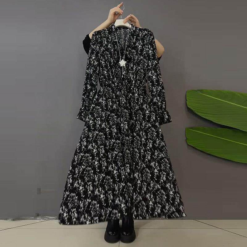 复古大码女装V领长袖碎花连衣裙2026春季新款长款优雅洋气裙子潮