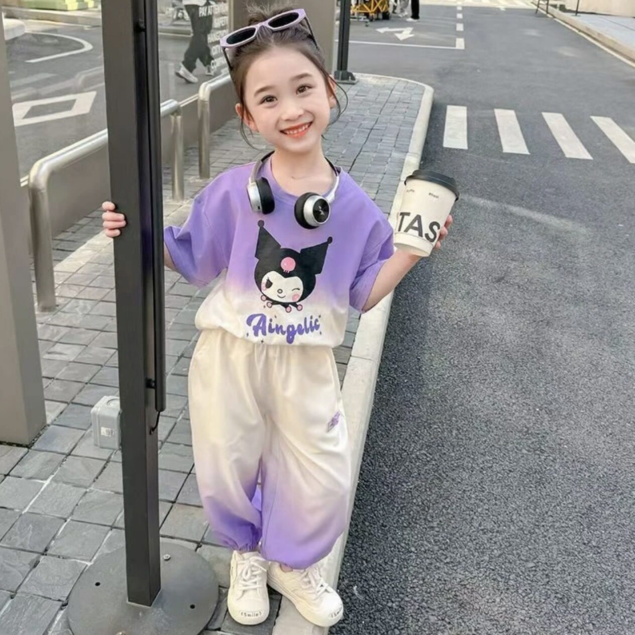 儿童洋气速干短袖长裤套装夏季女童韩版渐变两件套小女孩宝宝潮款