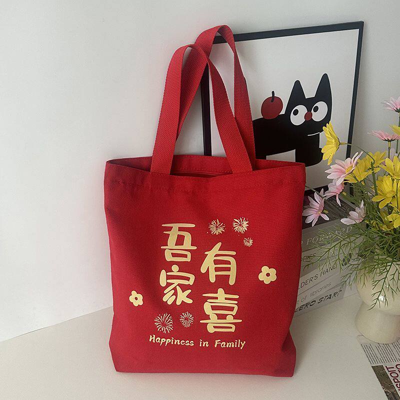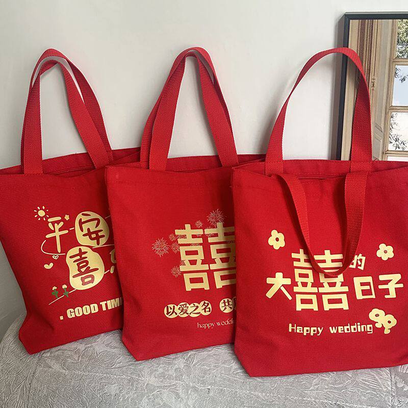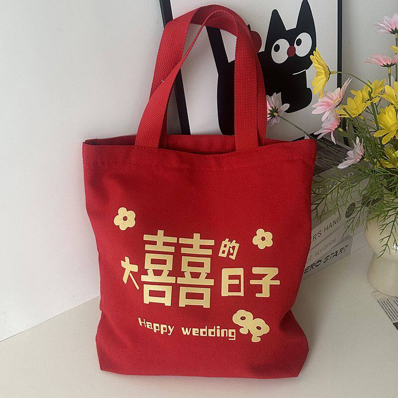红色帆布包结婚伴手礼包包中国风色喜庆伴娘礼物收纳袋订婚手提袋