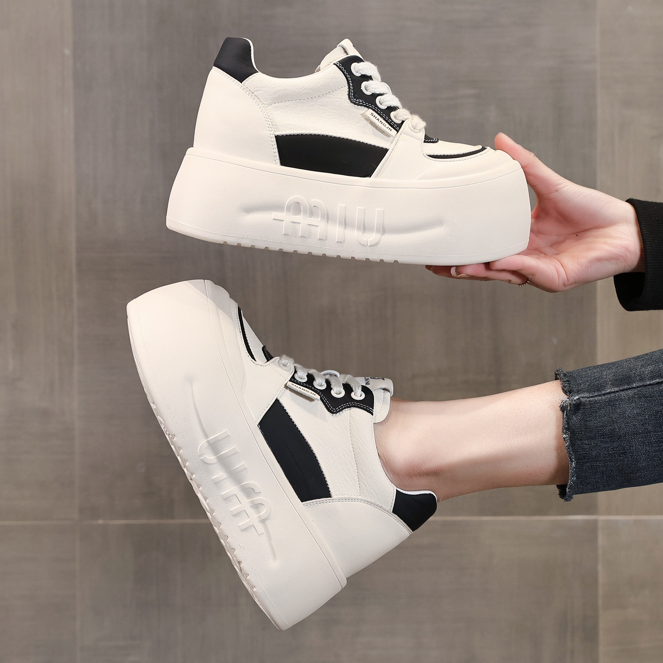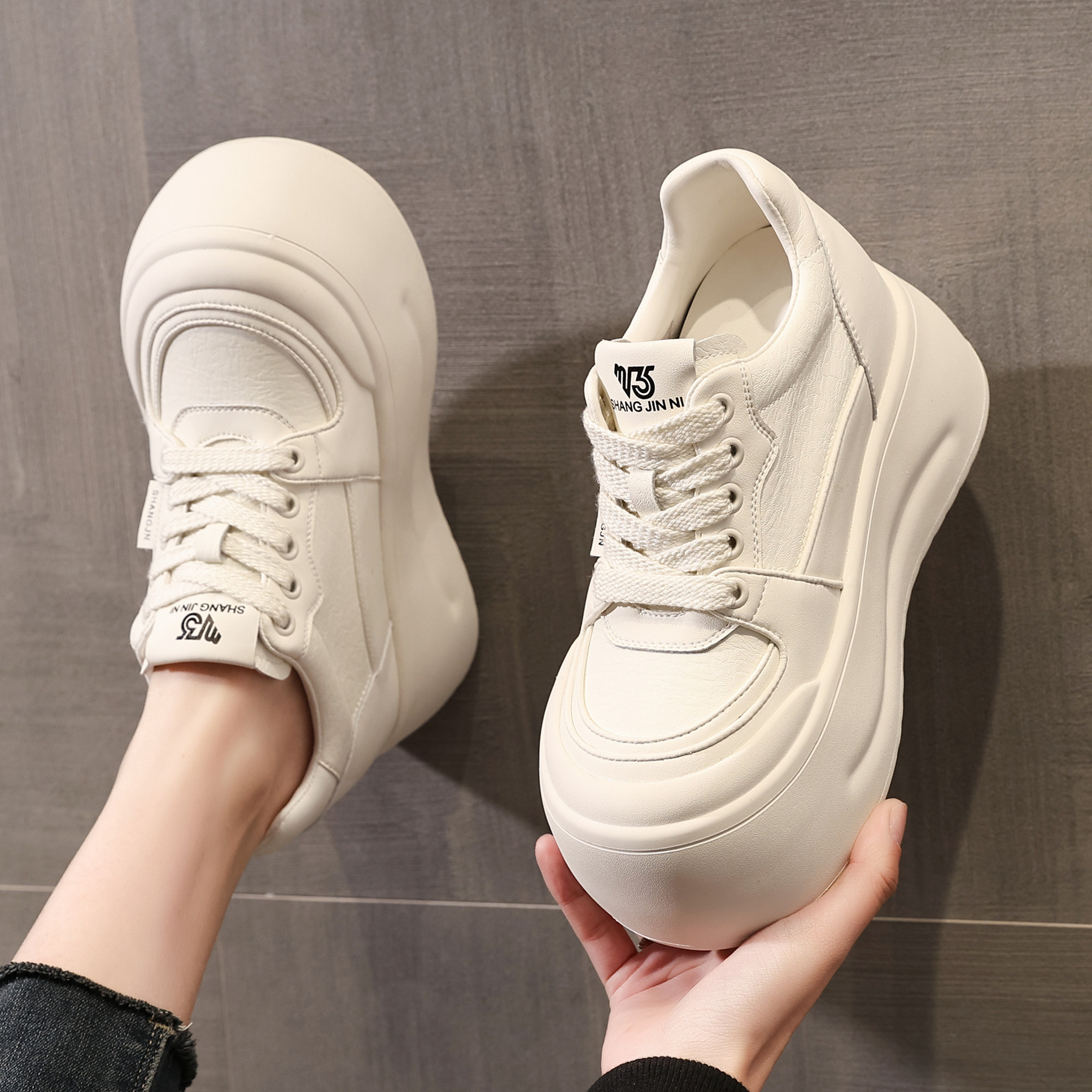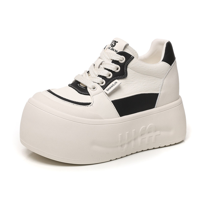 ZFCQ新款厚底松糕内增高小白鞋女款真皮2026春丑萌小个子8cm潮鞋