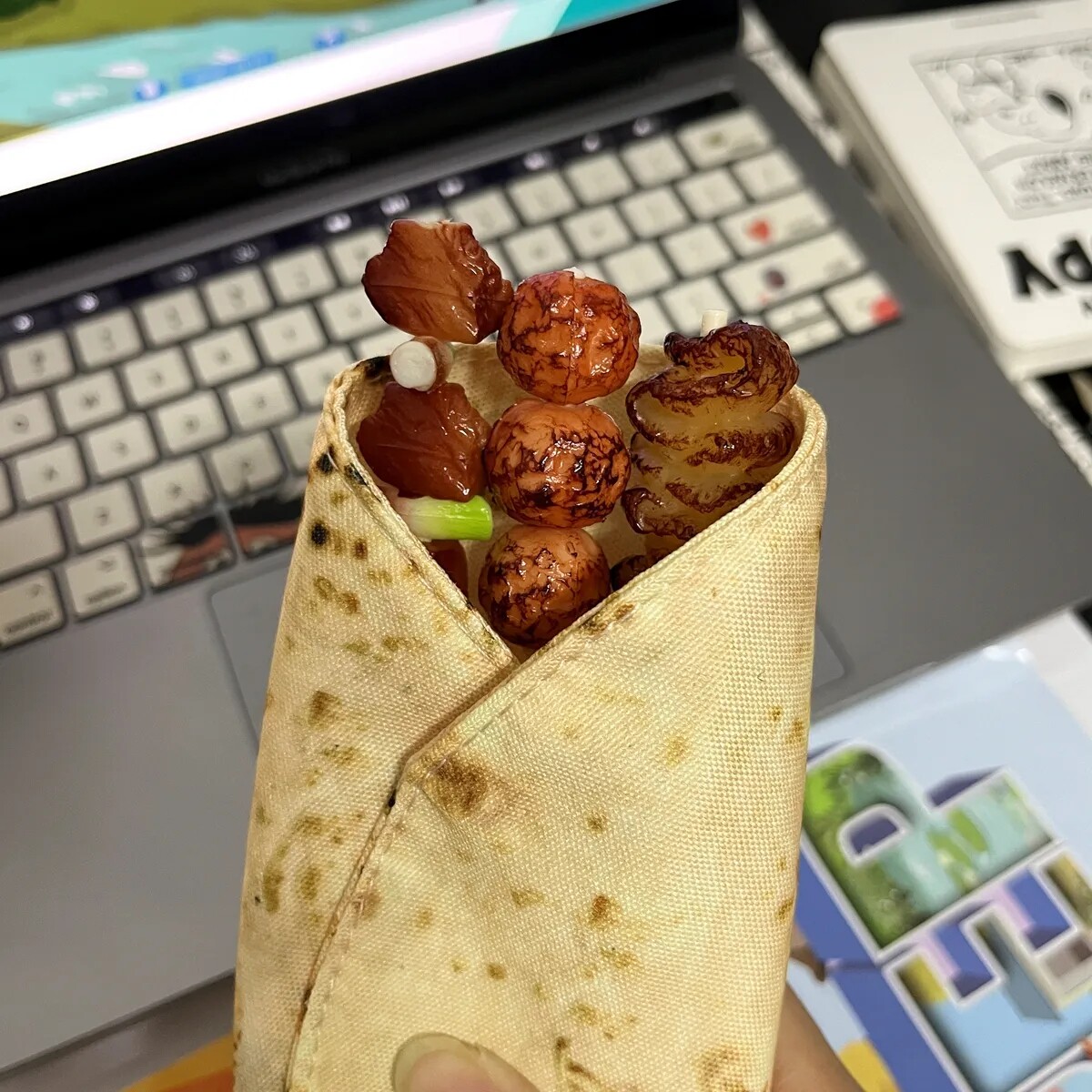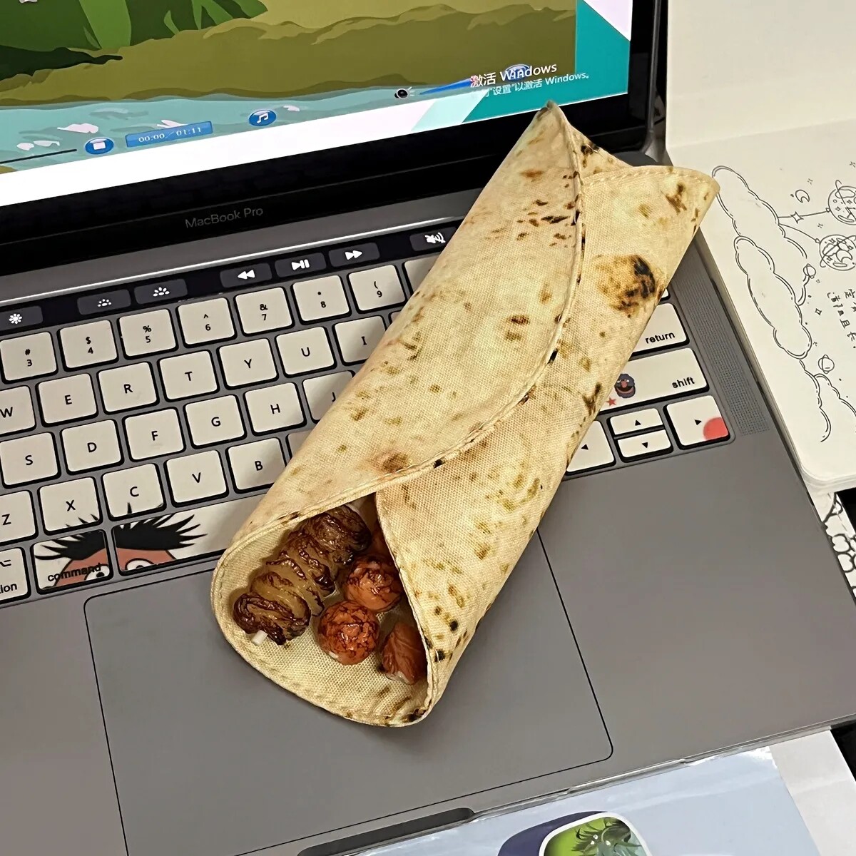新款印度飞饼煎饼笔袋小众烤串笔创意搞怪卷饼学生笔袋初中生笔袋