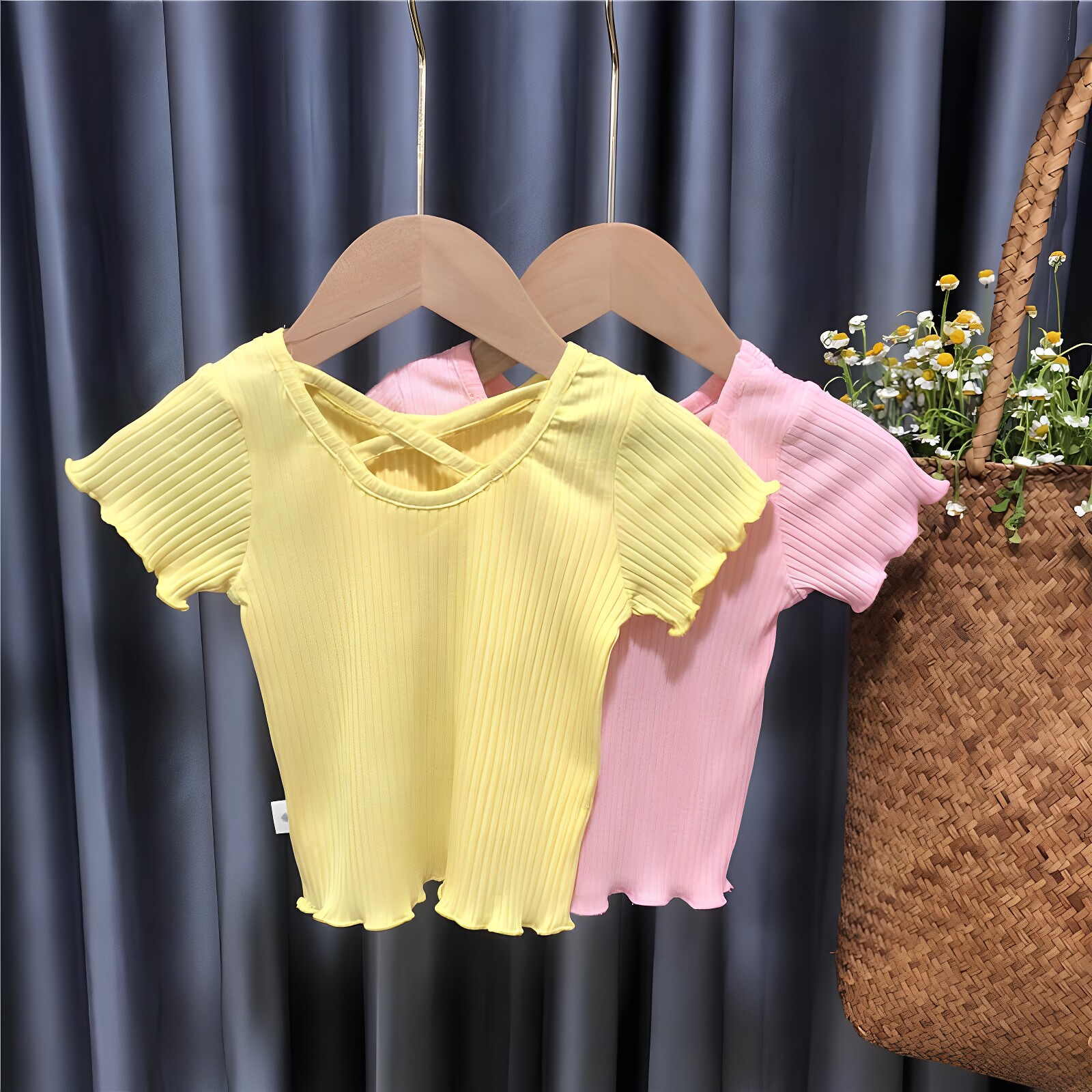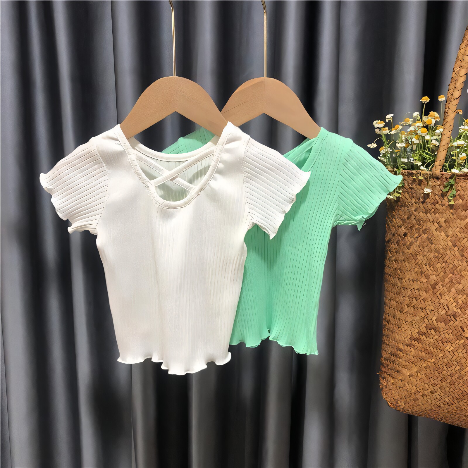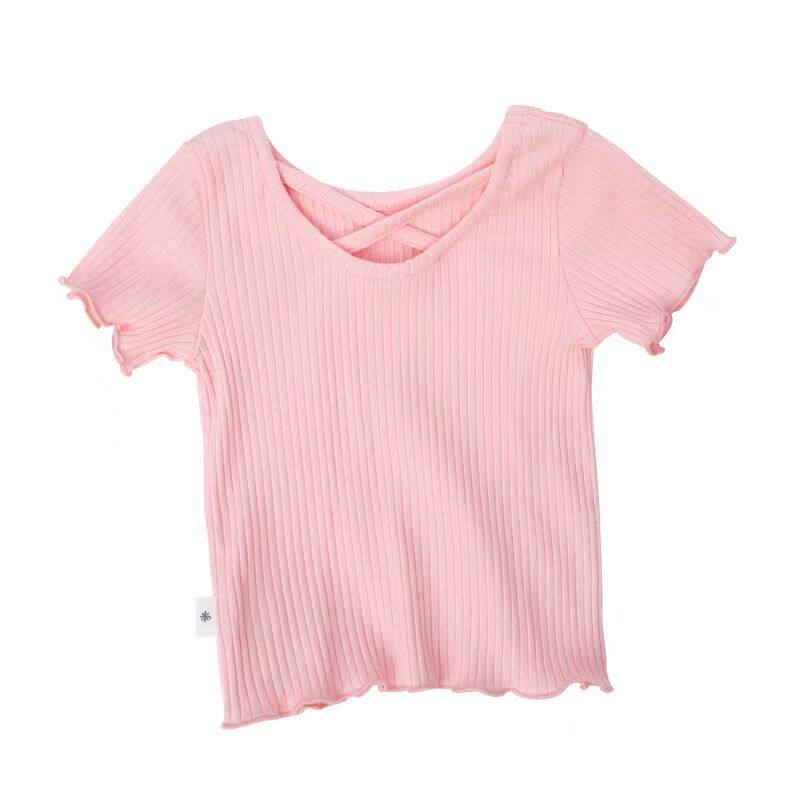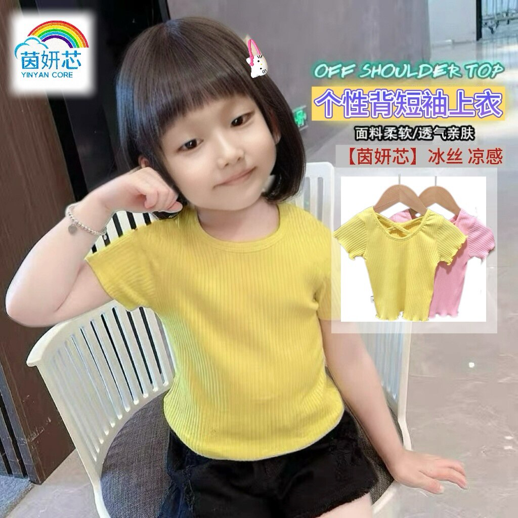韩版女童冰丝纯色上衣短袖t恤洋气女宝宝夏季中小童薄款多巴胺
