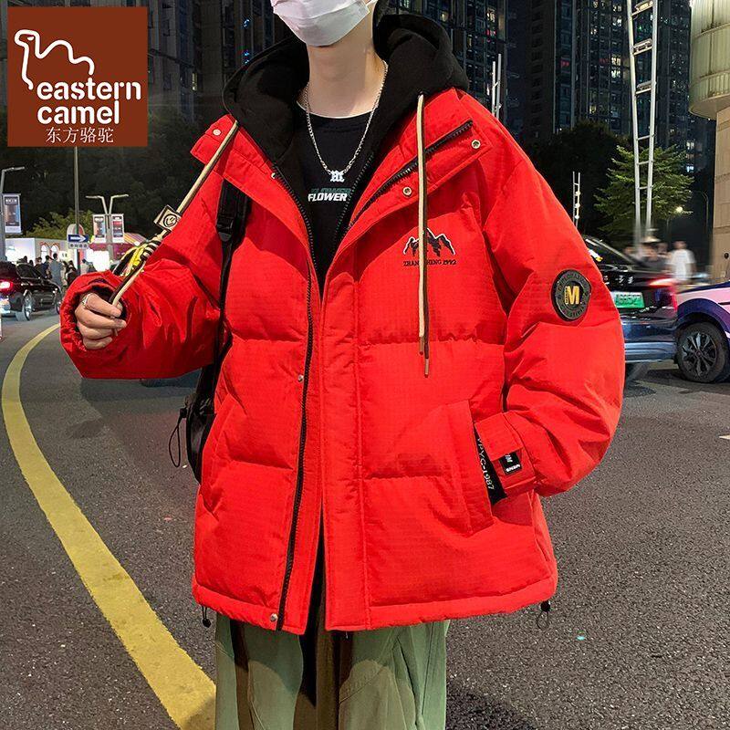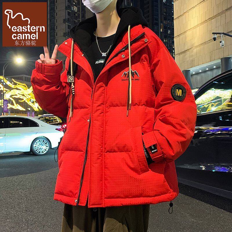 外套男2024年冬季新款加厚红色连帽青少年羽绒服潮牌白鸭绒本命年