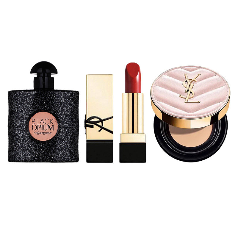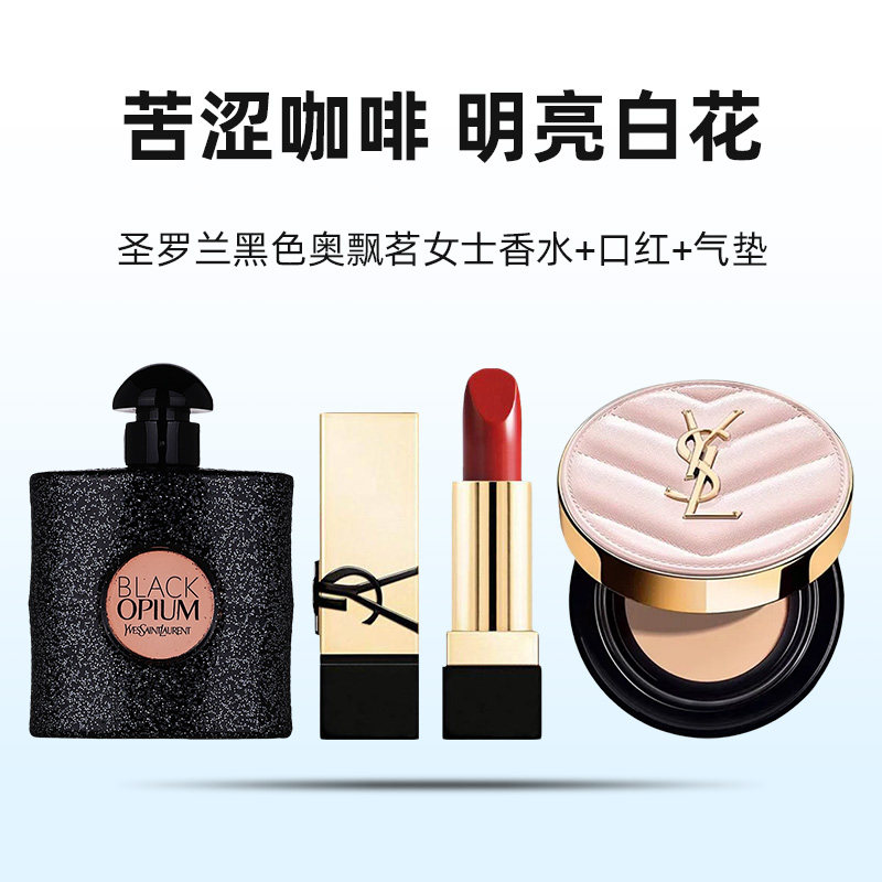【自营】YSL/圣罗兰黑鸦片口红香水套装纯口红RM迷你粉气垫B10