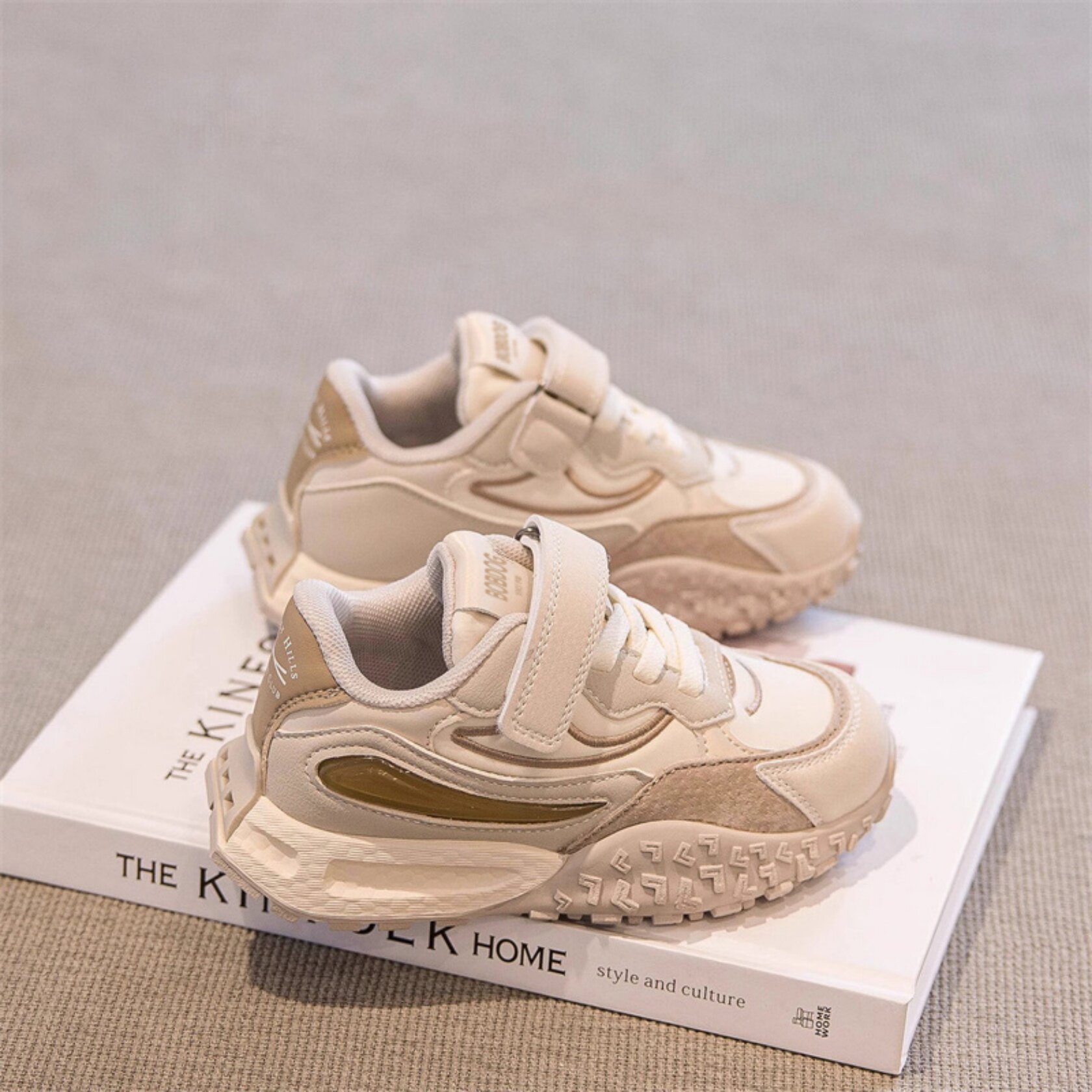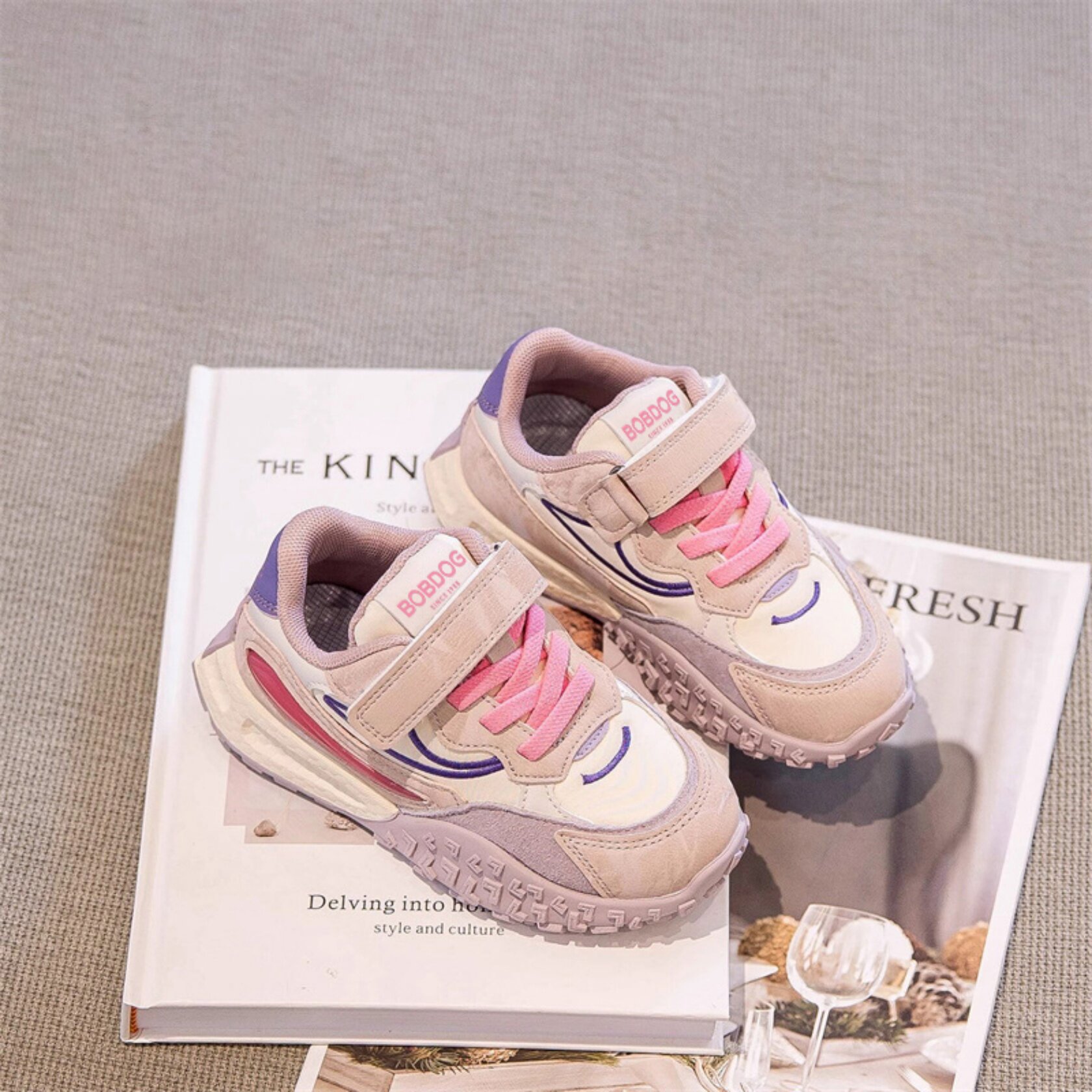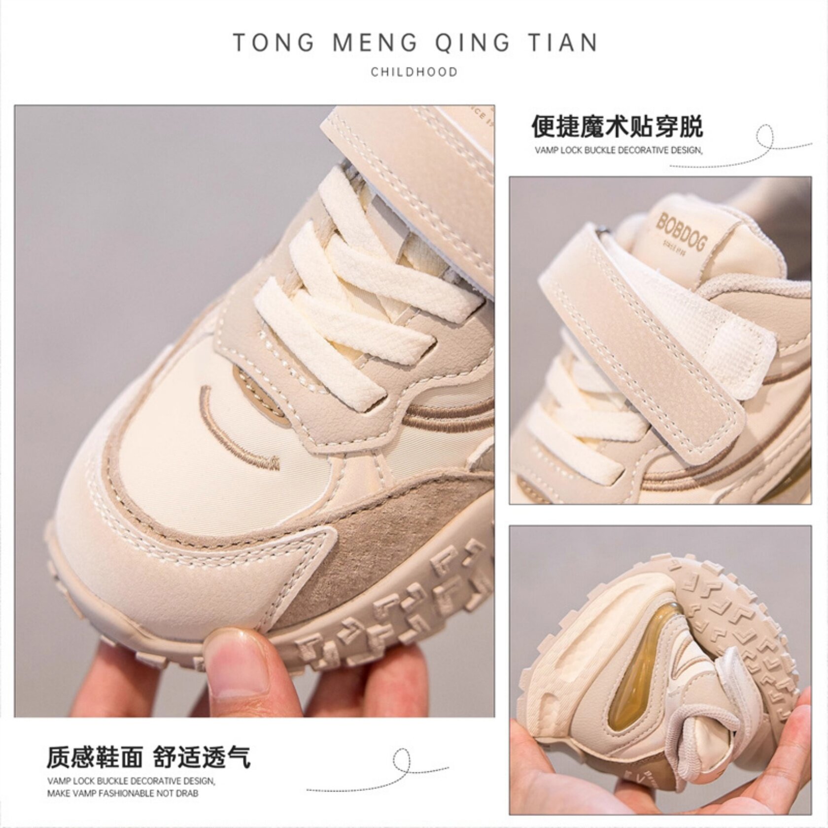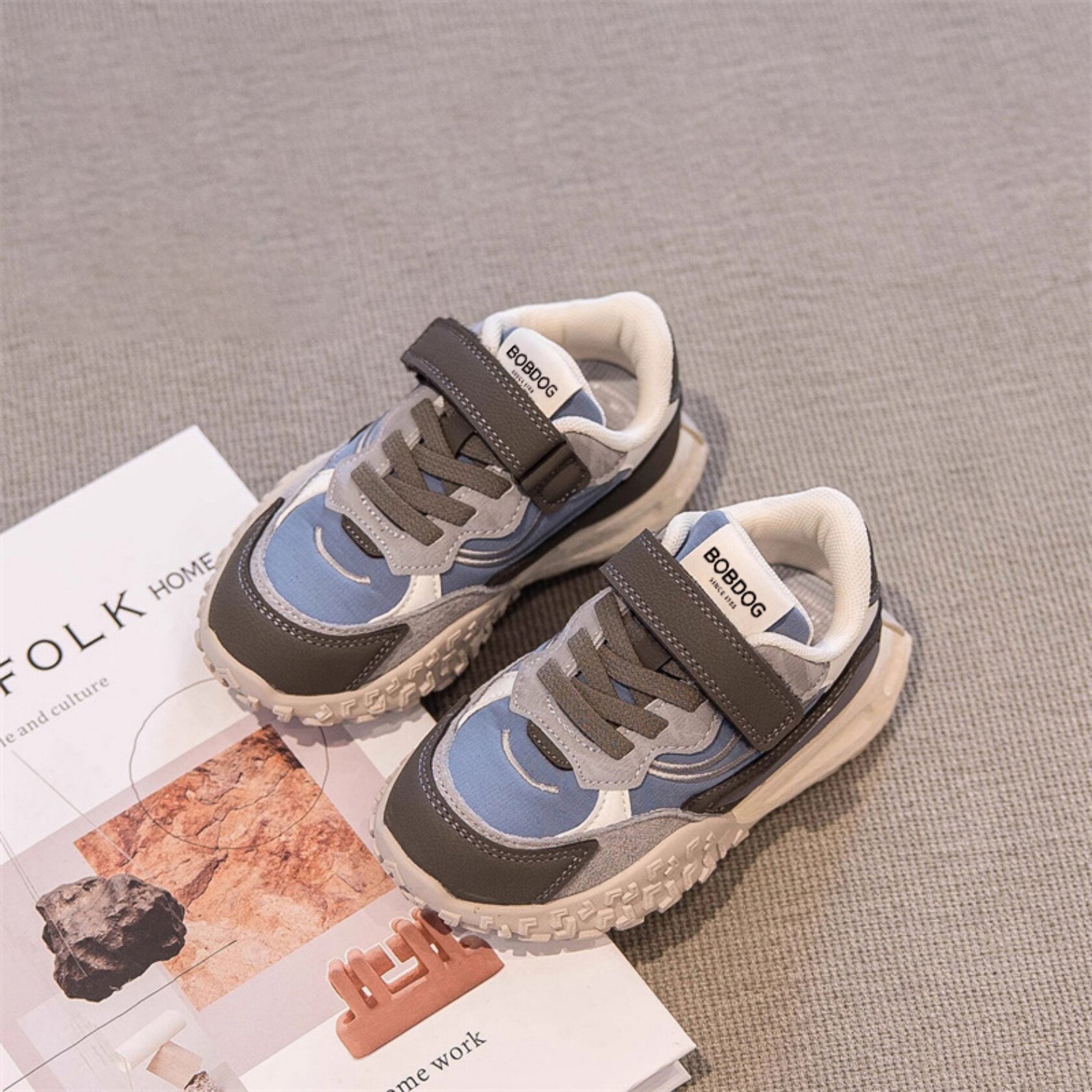 巴布豆真皮女童运动鞋2026春秋新款男童老爹鞋软底透气儿童跑步鞋