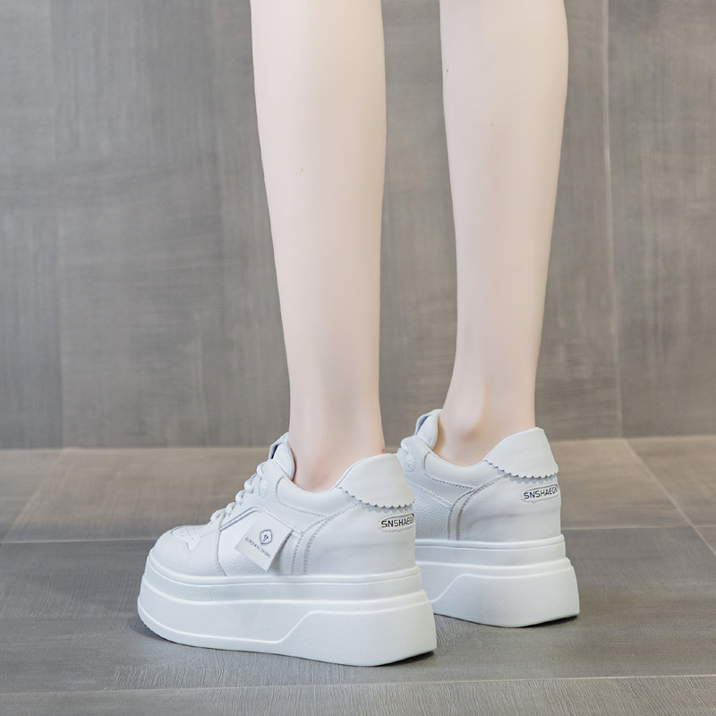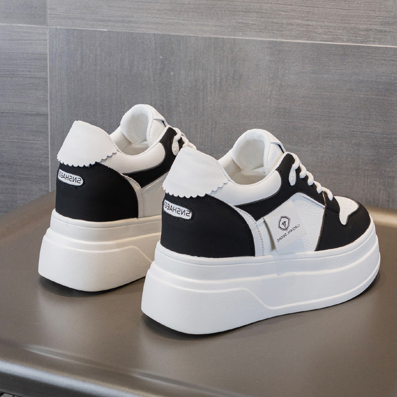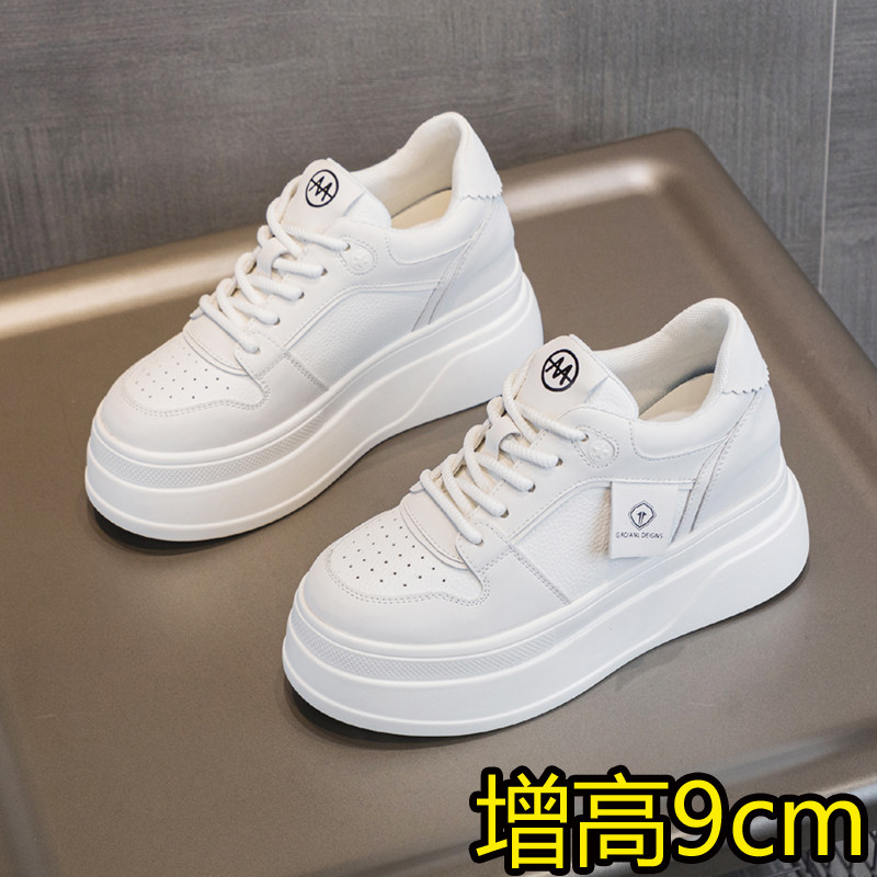 内增高小白鞋女2025新款小个子9cm厚底熊猫板鞋真皮休闲鞋小码33