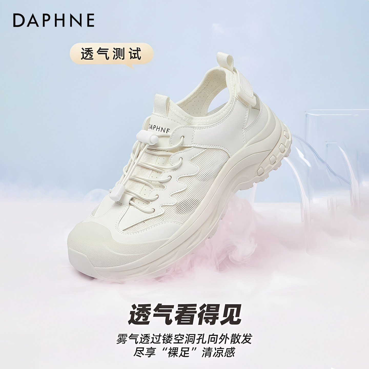 达芙妮小白鞋女款夏季薄款2026新款女鞋网面透气老爹运动镂空凉鞋