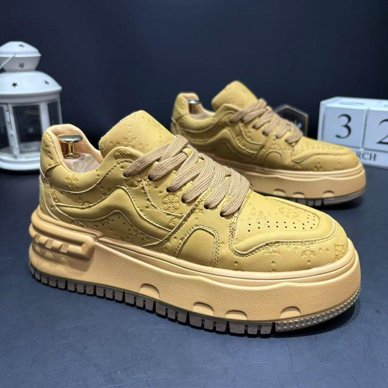 新款男鞋潮流印花软底舒适板鞋厚底增高春秋小白鞋通勤学院风休闲
