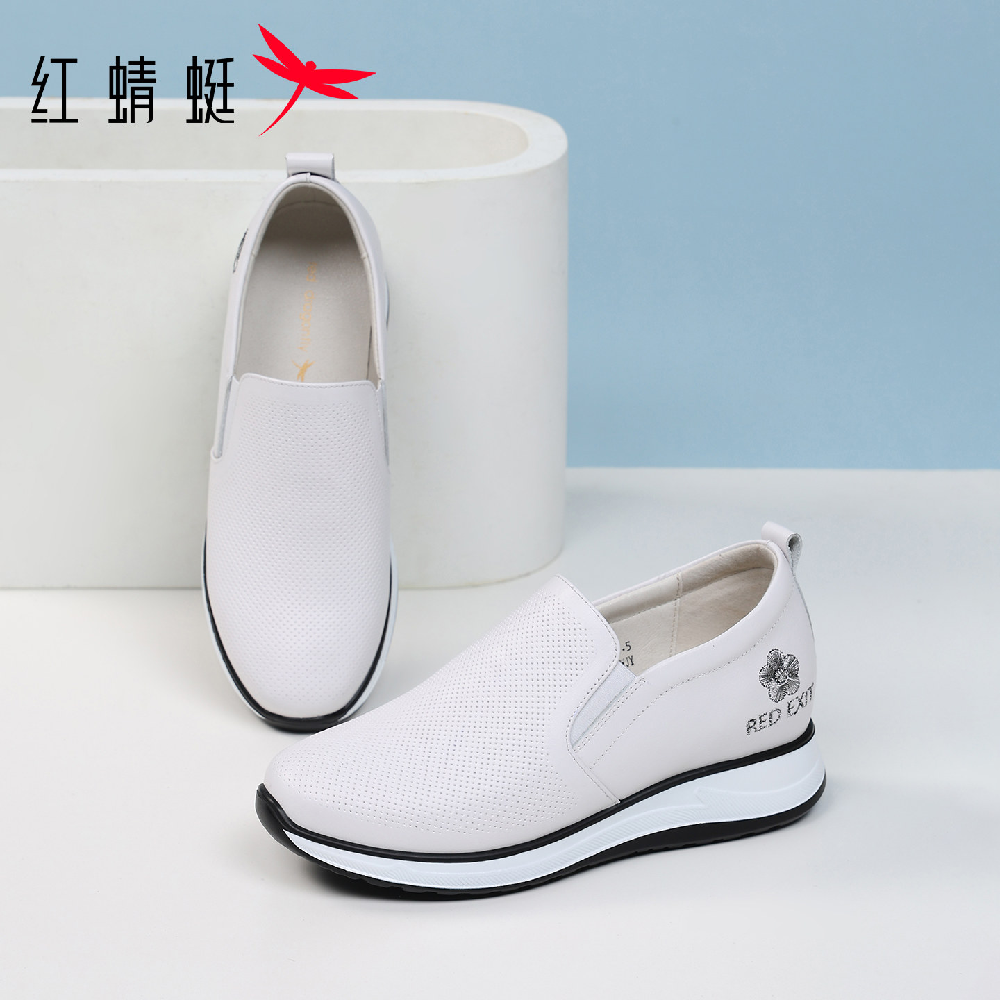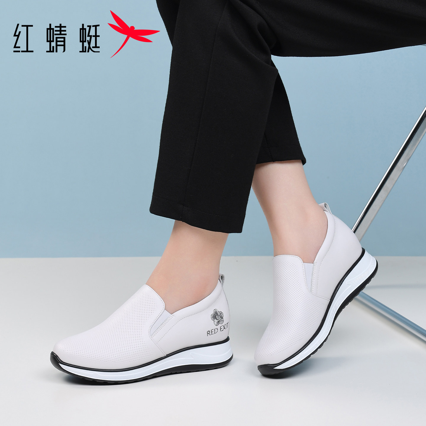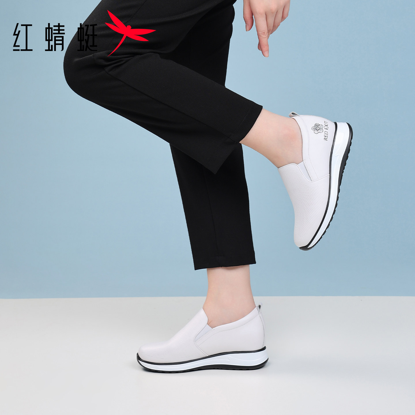311线报网描述:红蜻蜓一脚蹬内增高休闲鞋女妈妈单鞋小白鞋