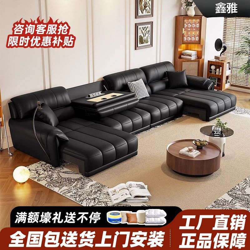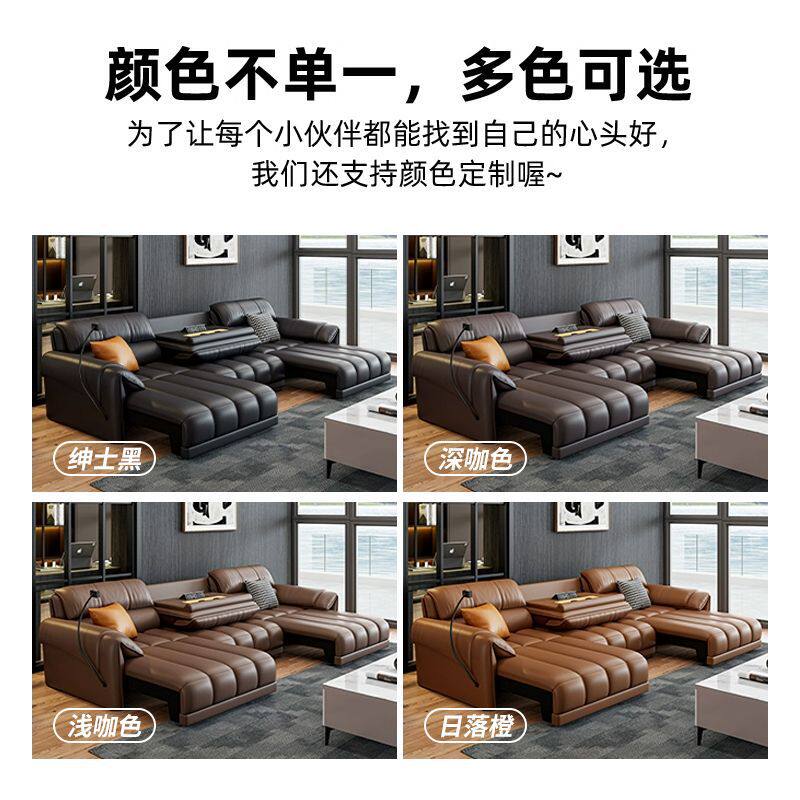 中古风零靠墙电动沙发多功能可遥控伸缩真皮沙发床一体两用劳伦斯