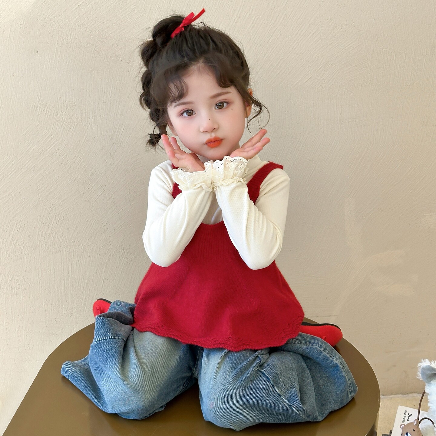 女童春季套装2026新款春装洋气时髦儿童女宝宝三件套红色春秋吊带