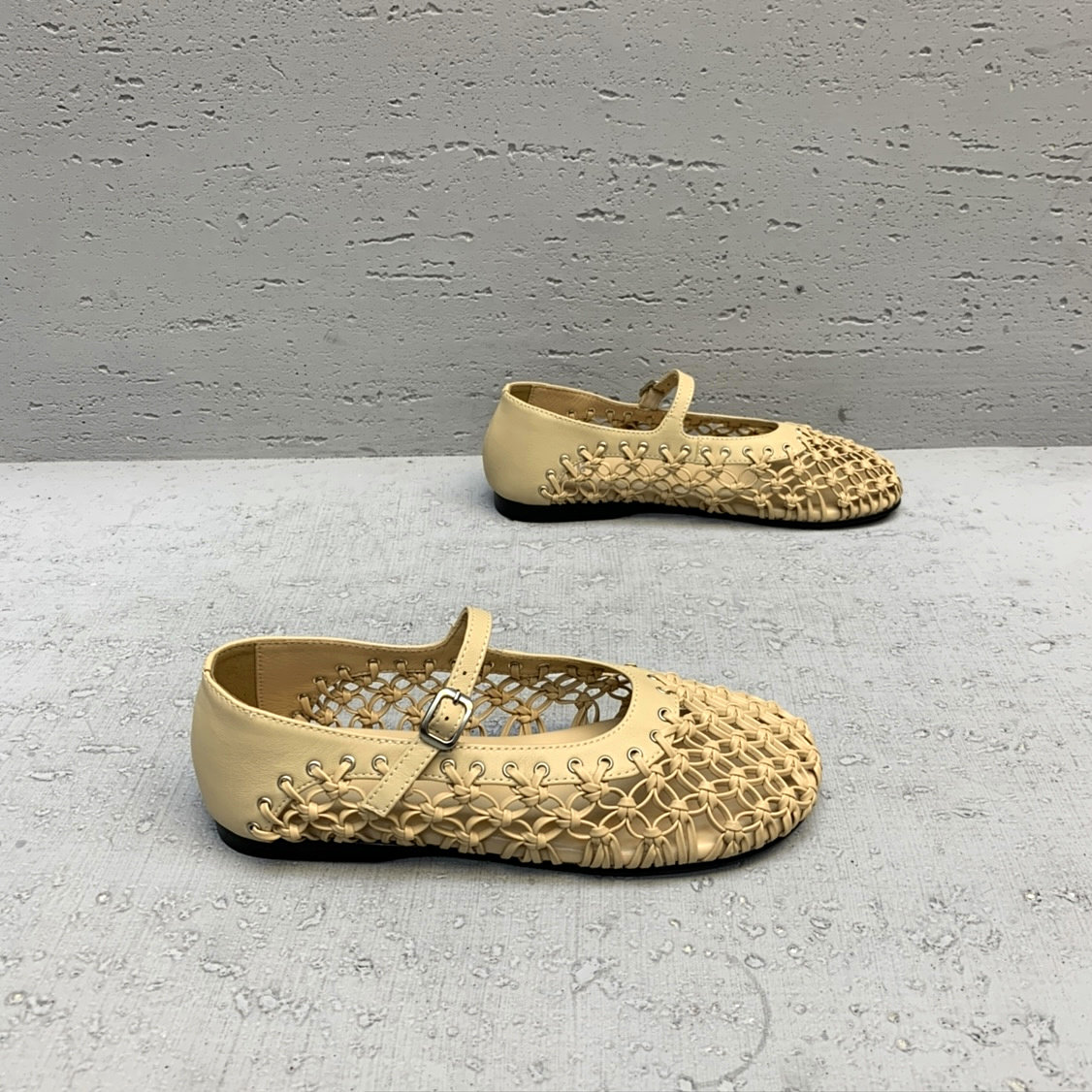 欧货2026春夏新款真皮女鞋浅口编织网孔平跟欧洲站小众玛丽珍鞋女
