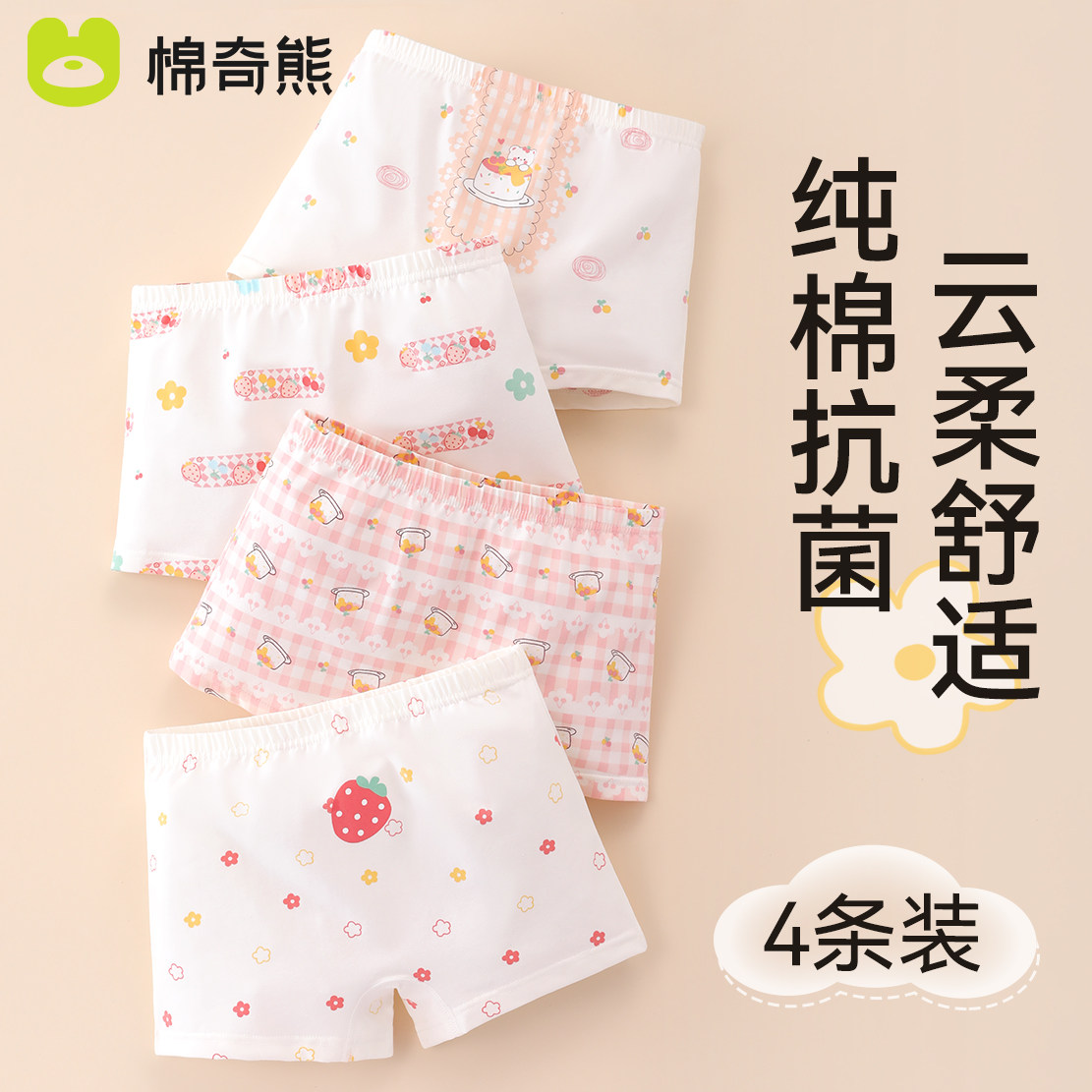 棉奇熊女童内裤纯棉莫代尔小女孩平角裤宝宝夏季冰丝儿童四角短裤