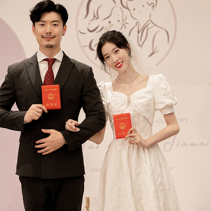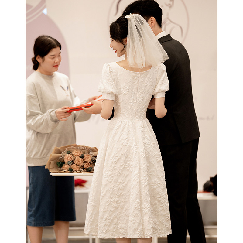 白色礼服女法式轻奢订婚领证登记连衣裙平时可穿小个子生日方领