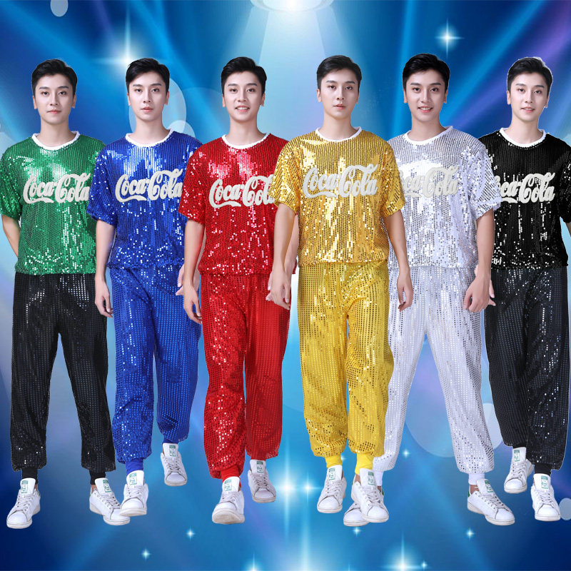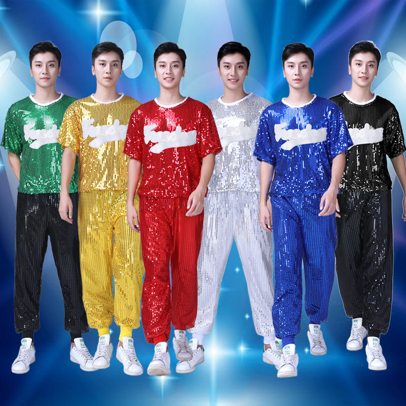 现代舞演出服男套装成人新款啦啦队舞蹈服亮片裤子上衣爵士舞服装