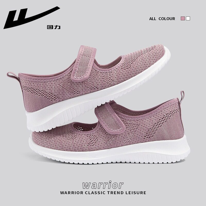回力运动鞋女款老人一字带夏季网面透气薄款轻便软底防滑健步鞋子