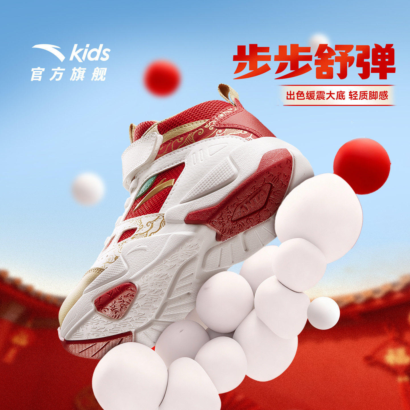 马年新年款|安踏儿童篮球鞋2026红色小童防滑耐磨魔术贴运动板鞋