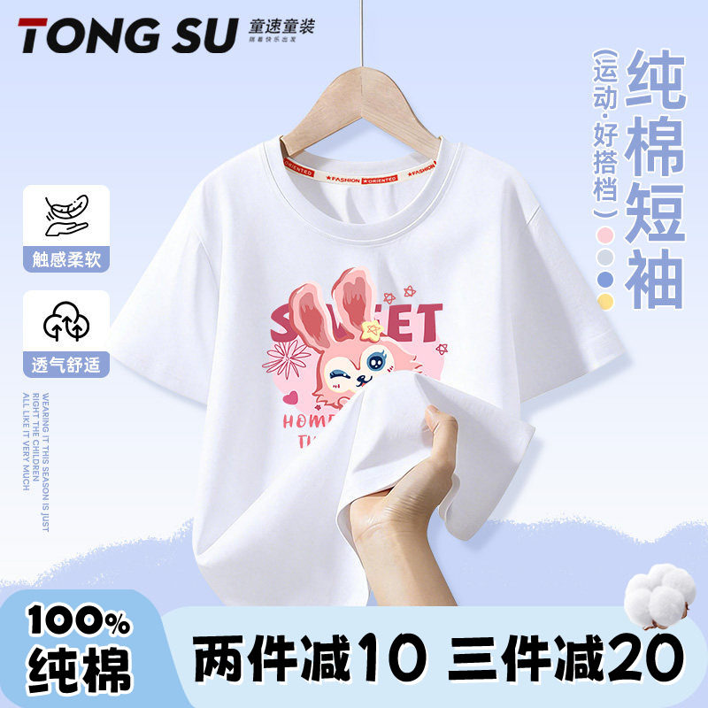 女童短袖t恤纯棉2026新款洋气打底衫6-10岁女孩时髦上衣儿童夏装