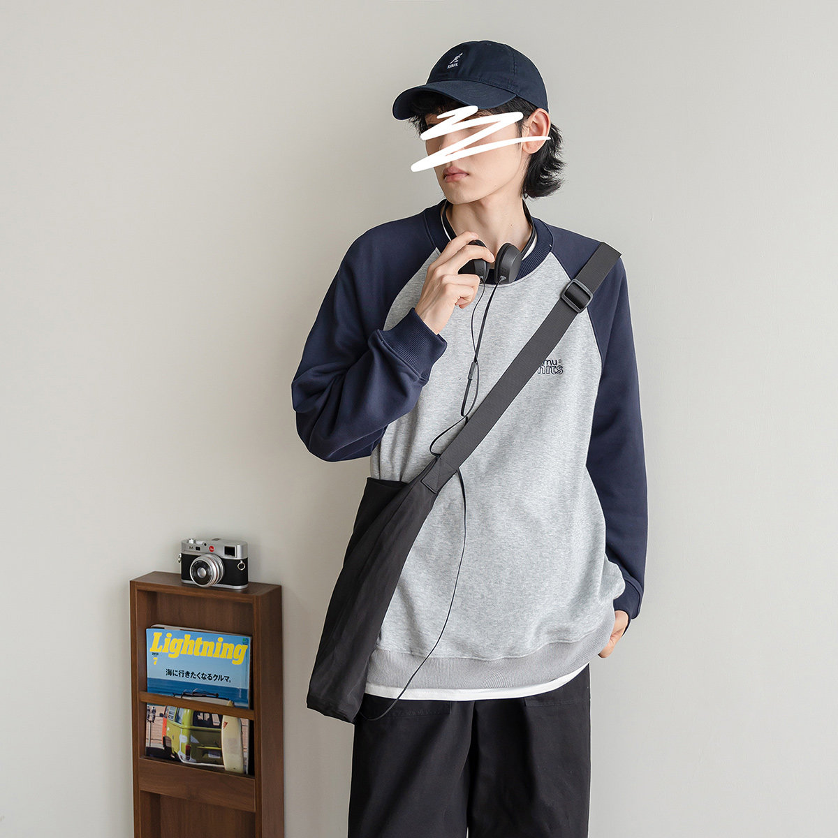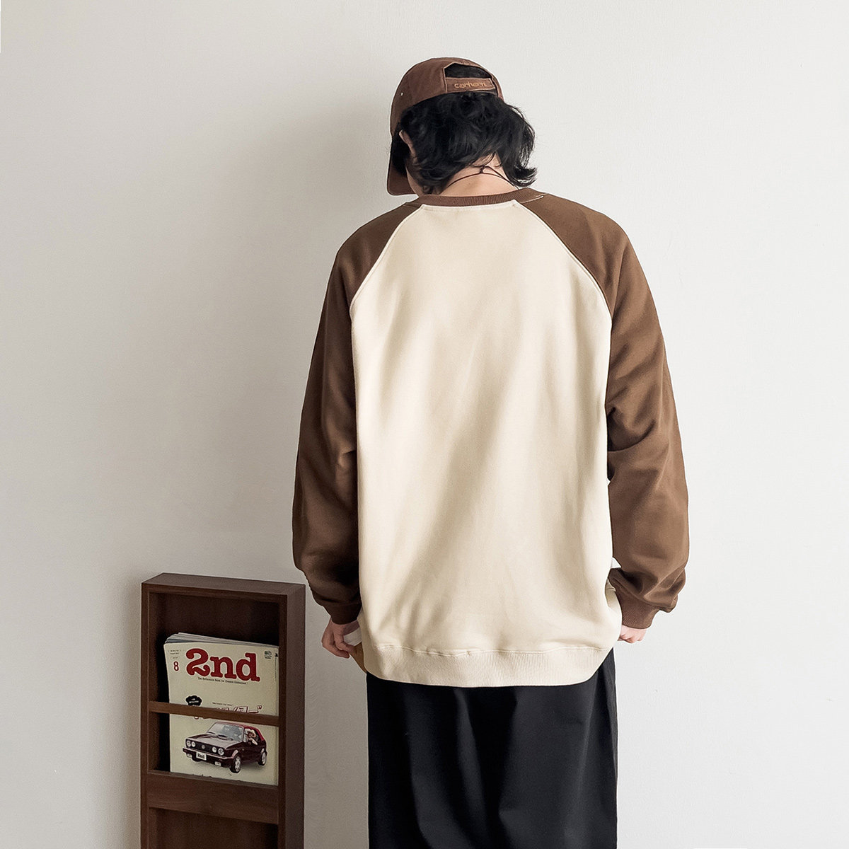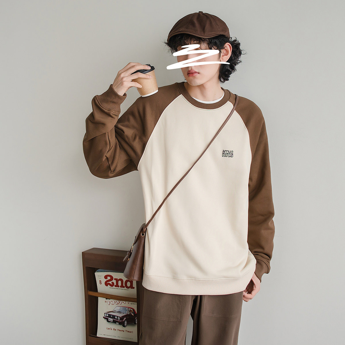 苏打汽水工作室春季拼接撞色圆领卫衣日系男女款宽松休闲百搭外套