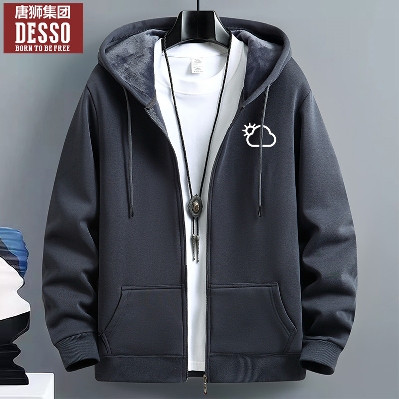 唐狮集团Desso秋冬卫衣男款加绒2026新款春秋季连帽开衫男士外套