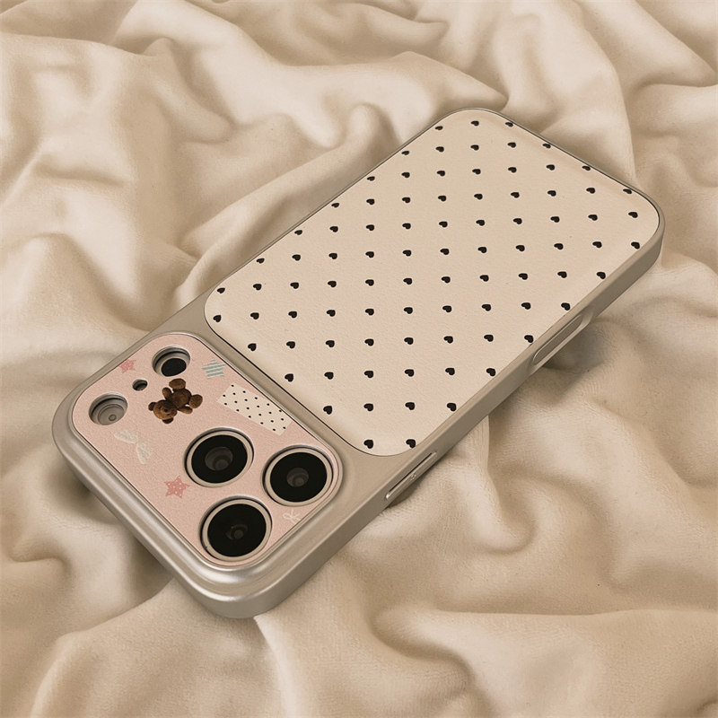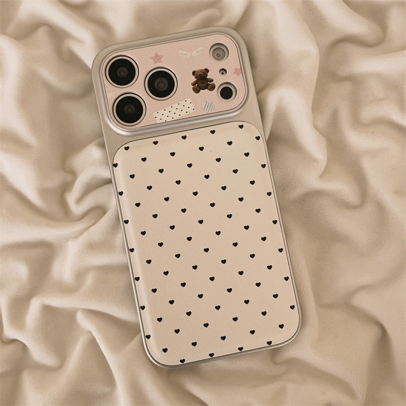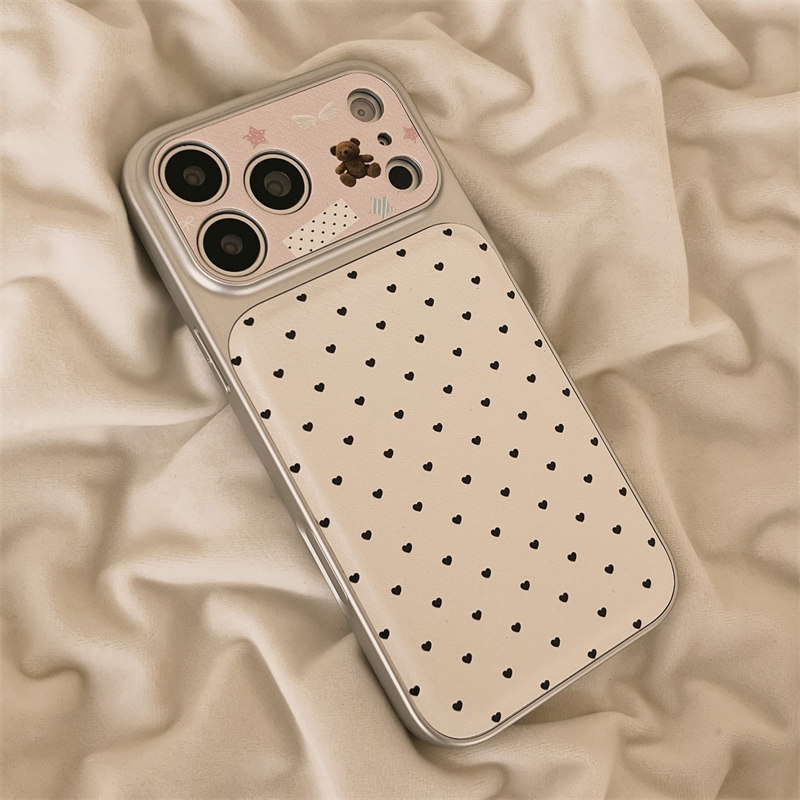 独壳 皮质爱心小熊带挂绳适用苹果17promax手机壳韩系少女简约iPhone16新款15防摔14pro女款13全包手机套硬壳