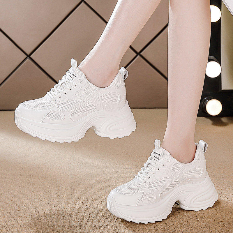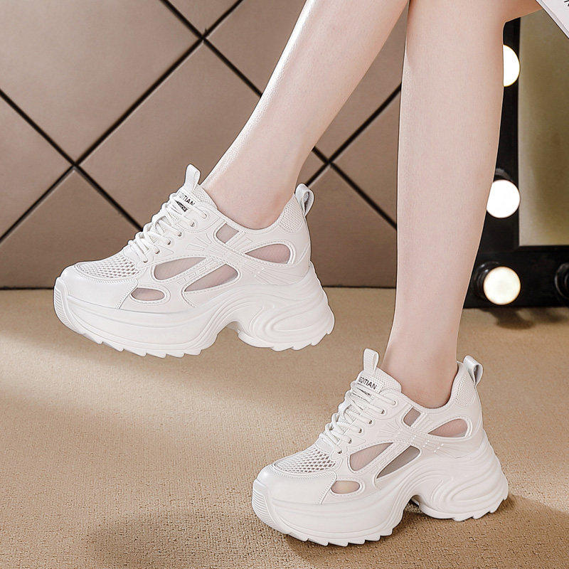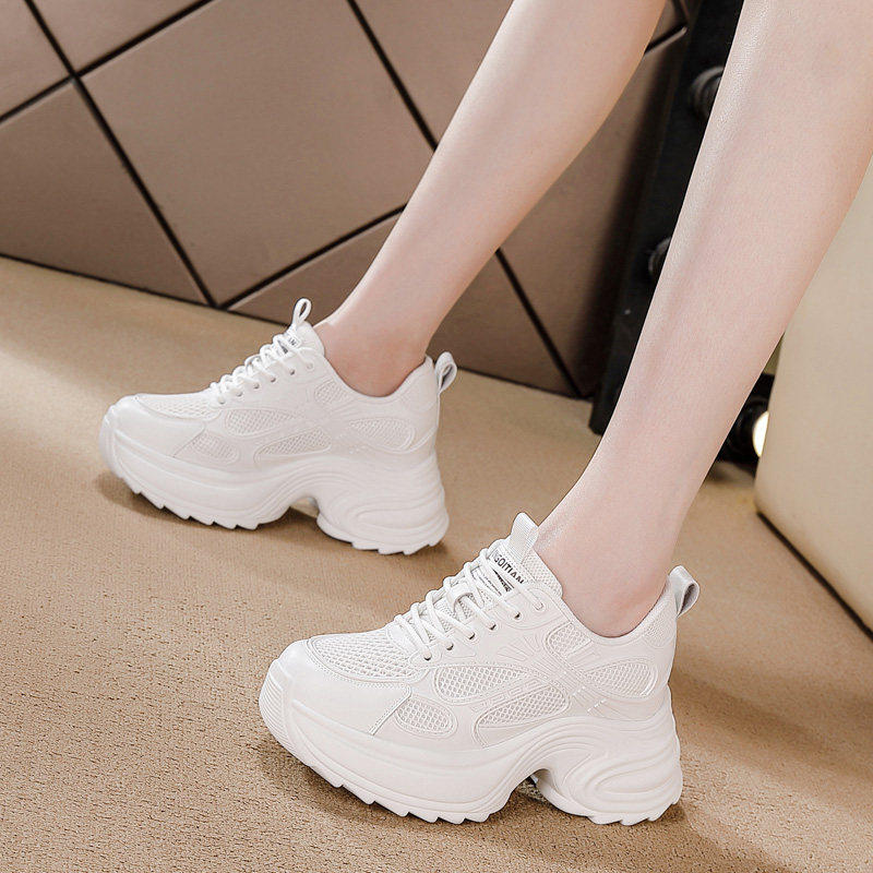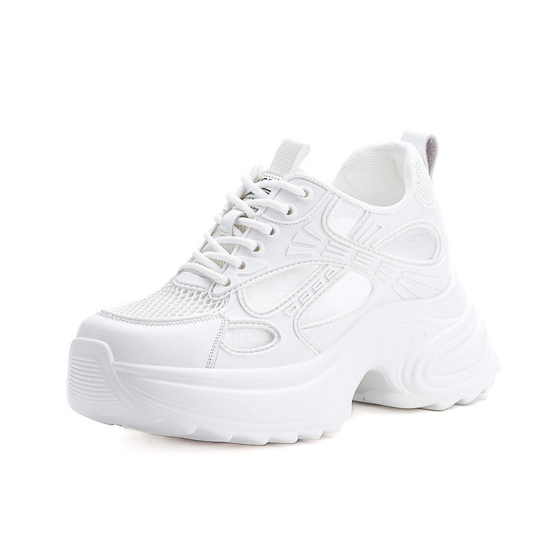 时尚小个子内增高透气小白鞋女2026春夏新款显脚小网面休闲老爹鞋