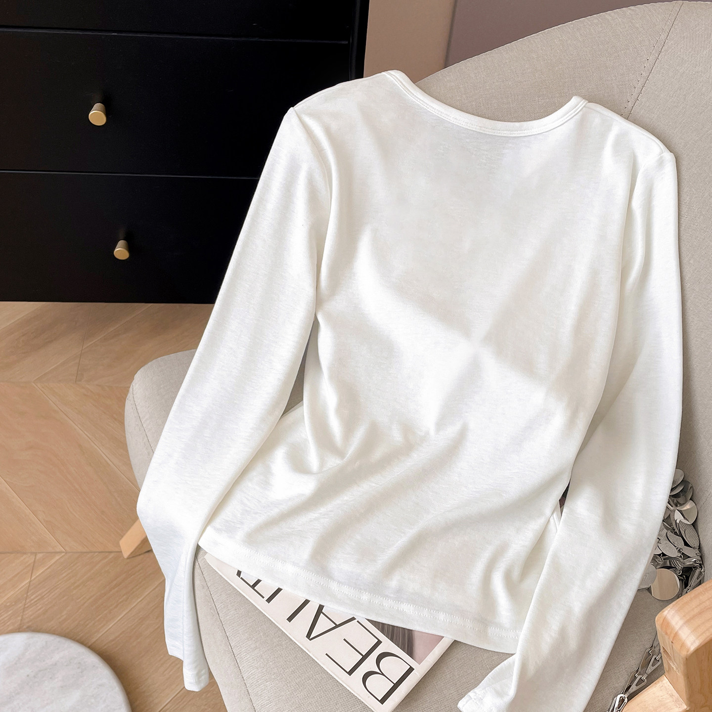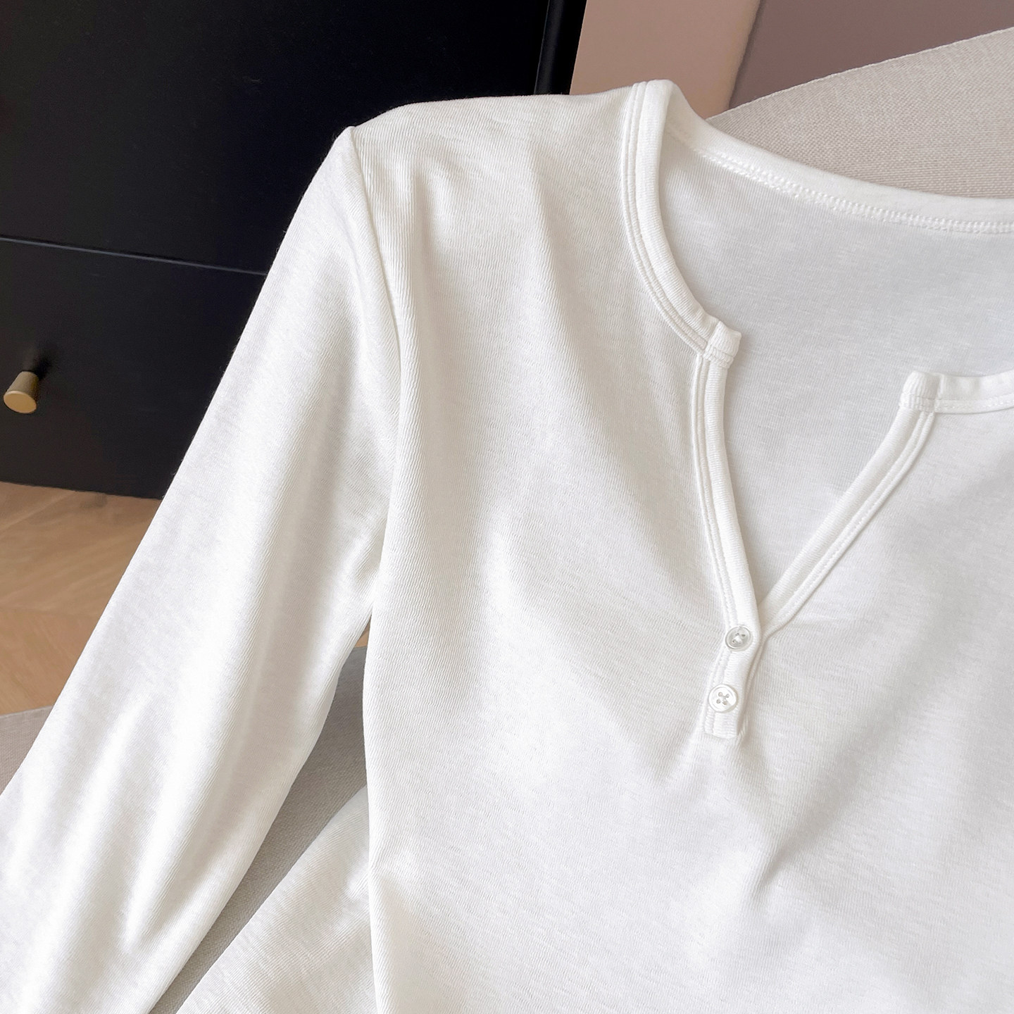 小C家半开领正肩长袖t恤女2026新款春季莫代尔打底衫白色内搭上衣