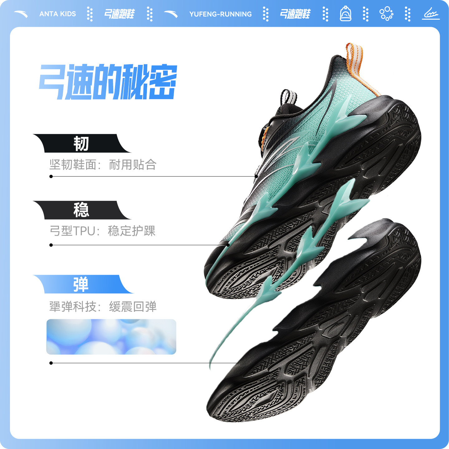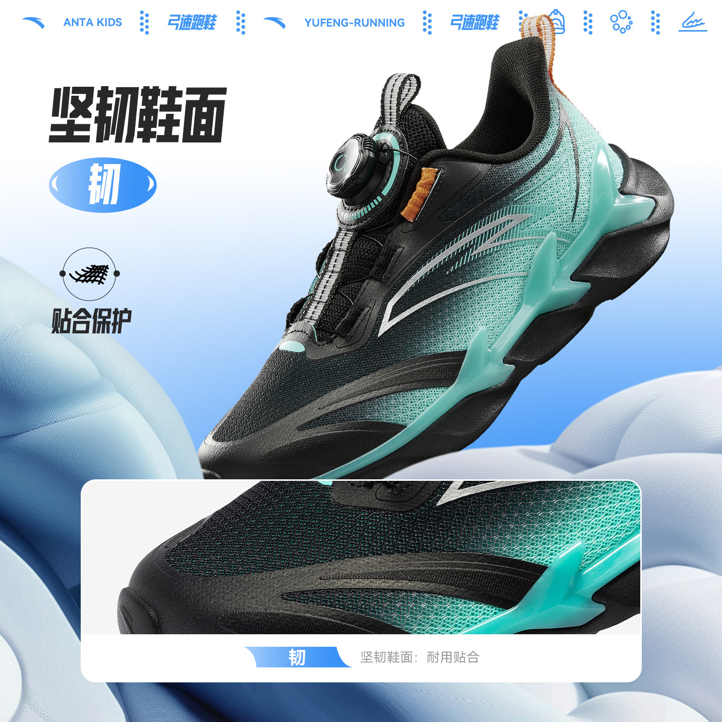 弓速安踏儿童运动鞋男童跑鞋2026春季新款大童旋钮鞋缓震校园跑鞋