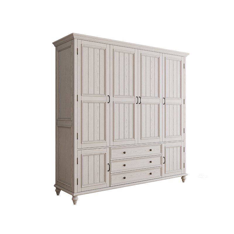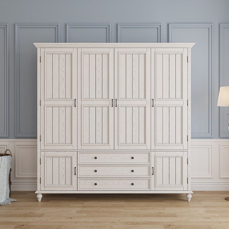 美式实木衣柜卧室收纳柜4门家用定制H对开门靠墙衣橱柜简约衣帽间
