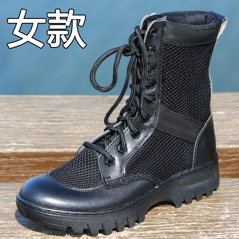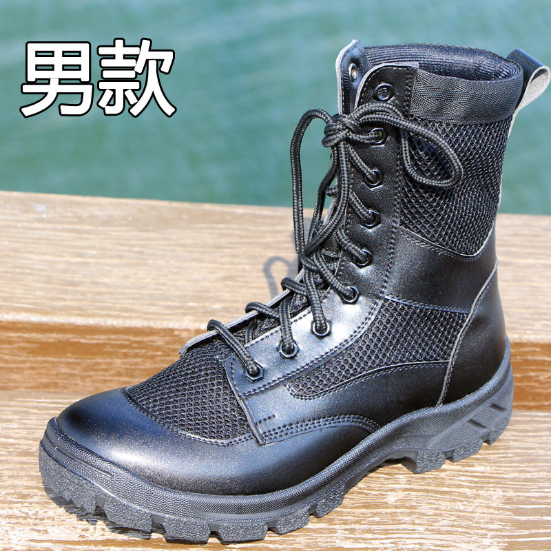 夏季男女拉链网眼透气作战靴大码超轻安检鞋作战训靴工装靴保安靴