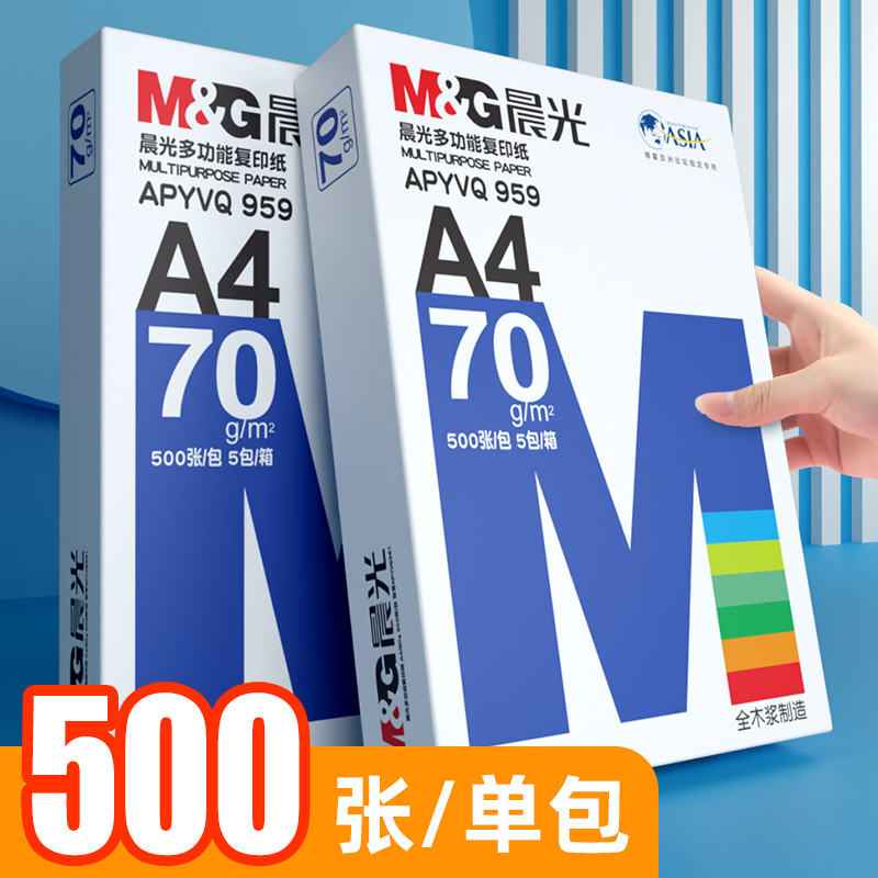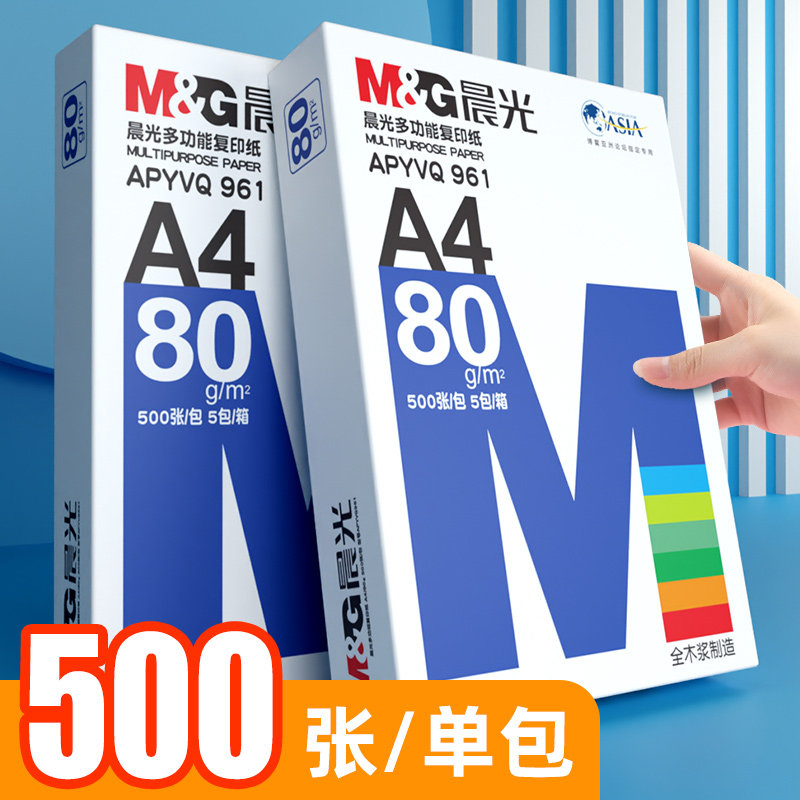 晨光a4打印纸70g复印纸80g加厚白色草稿纸70克双面100张单包一包500张整箱5包一箱木浆打印机纸办公用品包邮